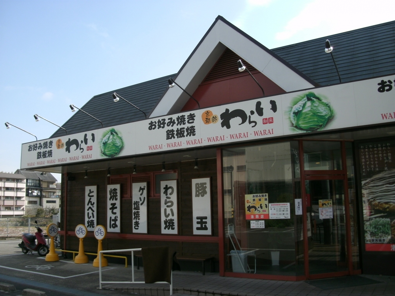 「錦わらい」さんは、国道9号線、中山の信号を西に400mほど行った国道沿い右手にあり、大きな駐車場もあるので入リやすいお店です。お好み焼、焼きそば、ベタ焼きなどをメインにするお店です。店内は広く、清潔で、スタッフの愛想もよかったです。“わらい焼き819円”を頂きましたが、表面はパリッとしていて、中はトロッとしており、普通のお好み焼きとはまったく違う食感でとても美味しかった。癖になりそうな味と食感でした。