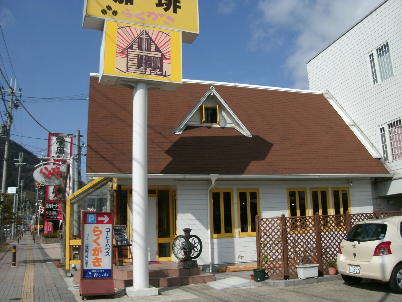「らくがき」さんは、国道9号線の沓掛の信号の東(京都市内より)にあります。お店の外観は小さなログハウス風の作り、中は明るく、奥まったところに席があり思ったより広かった。いわゆる、喫茶店ですが、パスタやサンドイッチなどの軽食もあります。自家製の“ケーキセット”の中からブルーベリーレアチーズを頂きましたが、甘さ控えめでチーズのコクもよく、とても丁寧に作ってありセットで700円は十分なコスパと思いました。
