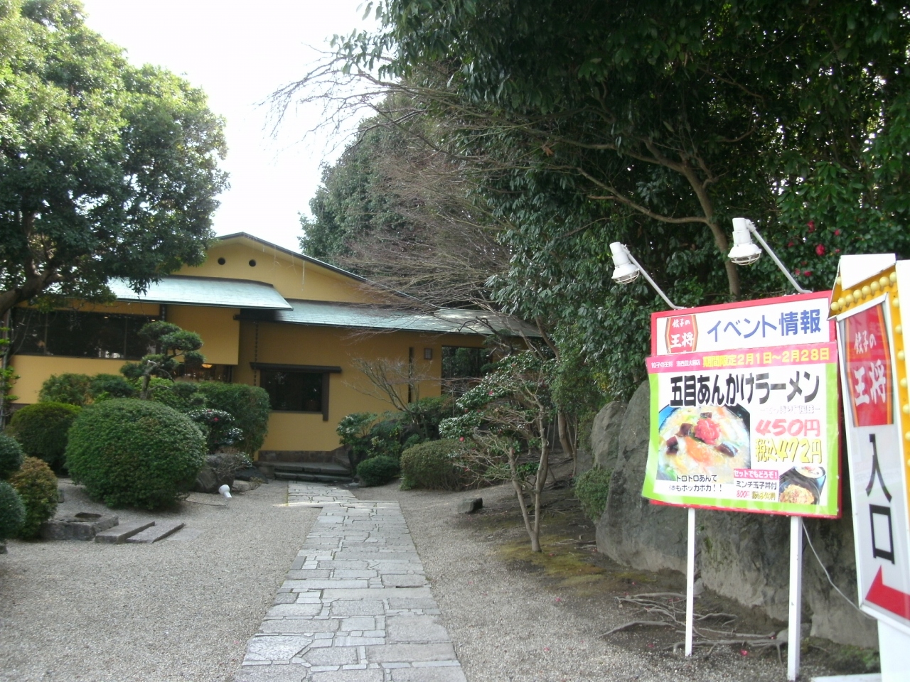 「餃子の王将 洛西芸大前店」は、国道9号線、沓掛の信号の近くで、広い駐車場もあり入りやすいお店です。入り口は国道側と芸大への通り側の二箇所あり、店は二階なので、国道側から入るとエレベータがあります。芸大通り側の入り口は、石畳みがひいてあり、ちょっとした料亭の様な感じです。店内は綺麗でカウンター、テーブル席があります。安い、美味いと言う王将の売りは勿論、綺麗なお店で、24時間営業なのでとても人気があります。