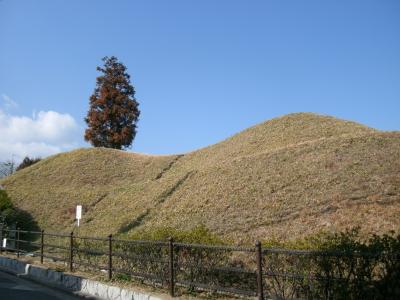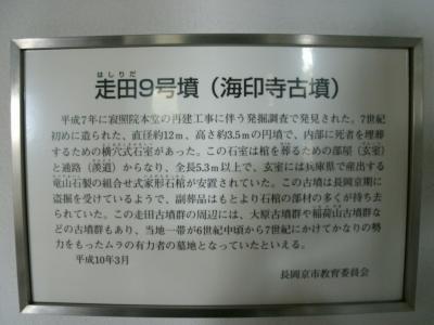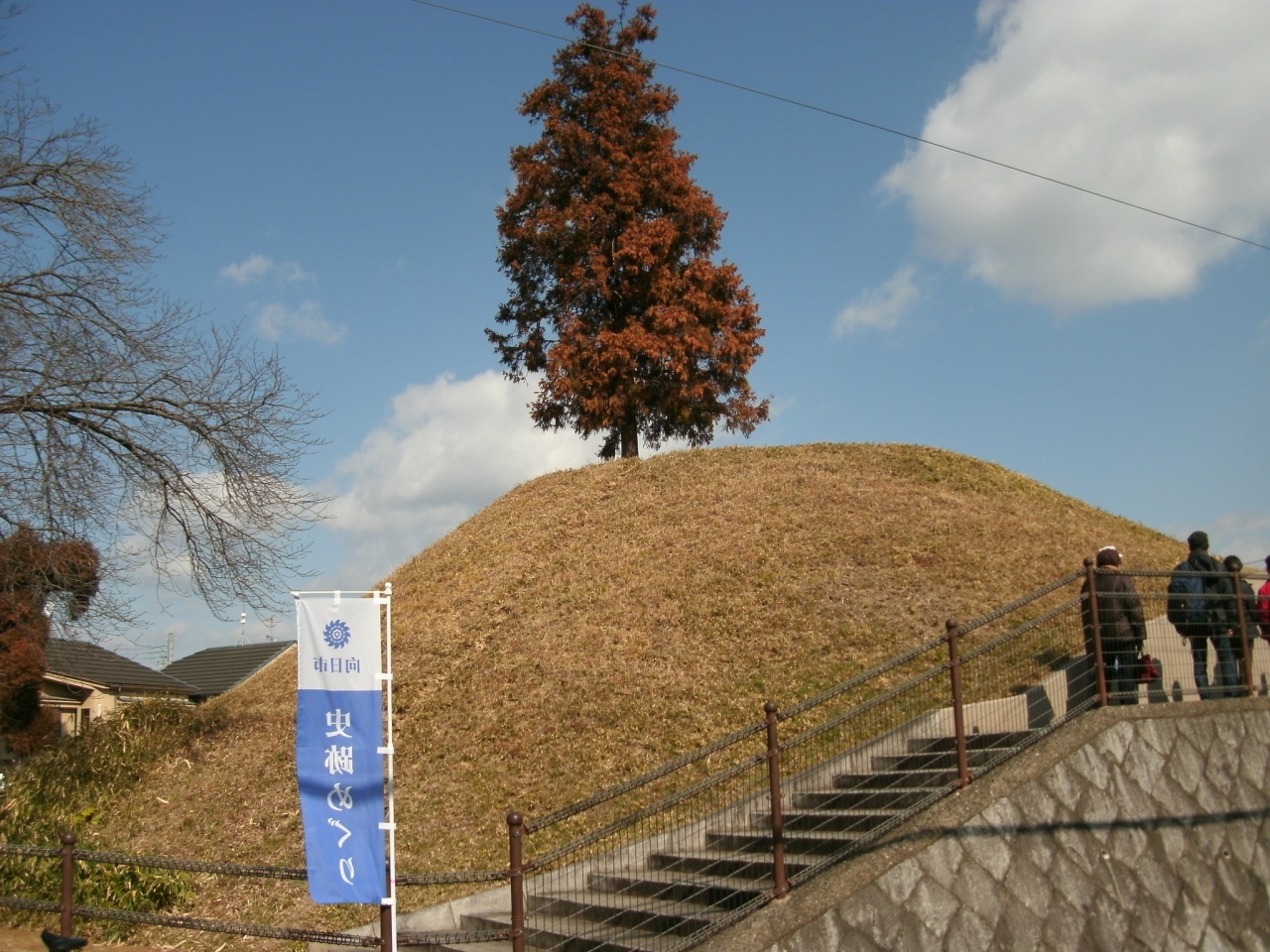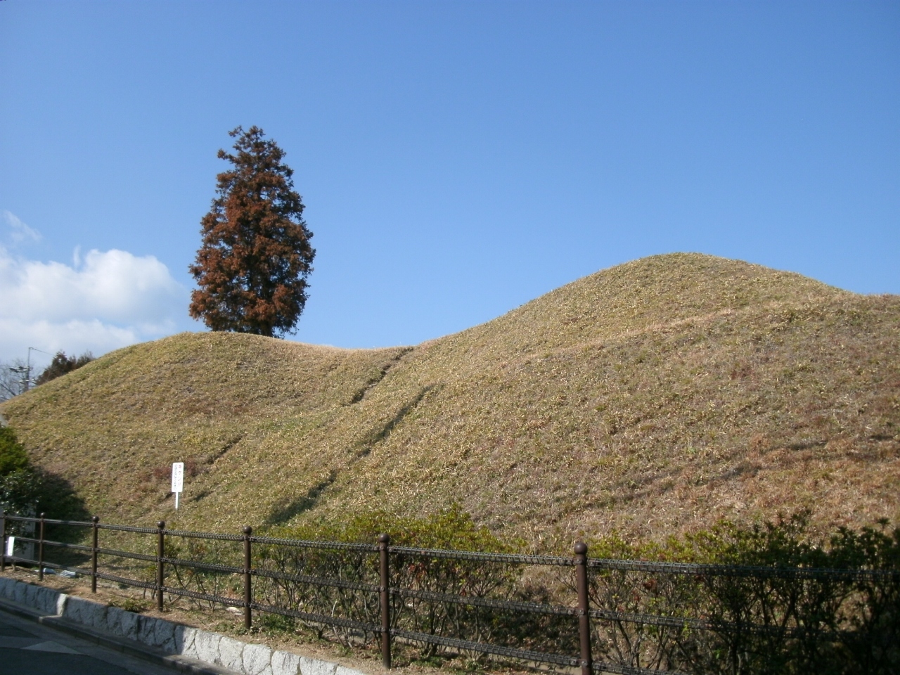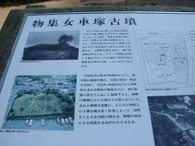 「物集女車塚古墳緑地公園」は、阪急東向日駅の北西、約700m、府道67号線ぞいにあります。“物集女車塚古墳”は、横穴式石室をもつ6世紀中頃の前方後円墳で、全長は46mあります。淳和天皇の棺を運ぶ車を埋めた塚との言い伝えから地元では“車塚”と呼ばれているそうです。現在は、府指定文化財として石室も整備され、古墳全体に笹が植えられた公園となっています。