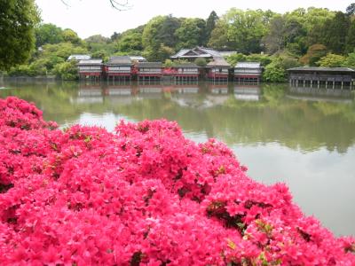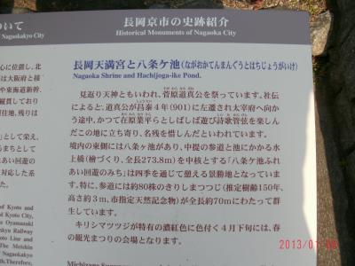 「長岡天満宮」は菅原道真公が太宰府へ左遷される途中、名残を惜しんだ地として道真公が祀られています。広大な境内の東側には八条ケ池が広がり、中堤の参道と池にかかる水上橋による“八条ケ池ふれあい回遊のみち”は、特に霧島つつじの頃に大変賑わいます。本殿は昭和16年に京都平安神宮の社殿を拝領移築したもので、真っ赤な素木の本殿で端正で丈が高く美しい姿をしております。道真公が学問の神様として尊敬されていることから、受験シーズンの頃には学生さん達が多く参拝されます。