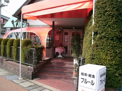 「フルール 」さんは、阪急長岡天神駅前の西側線路沿いにあります。洋館造りの建物で、お店の中は広くて独特の雰囲気があり、シャンデリアやベルベット貼りの高い天井、ステンド・グラス等、豪華なインテリアで優雅な気分を味わえるお店です。メニューも充実していて、喫茶メニューの他に、ピラフ、オムライス、カレー、エビフライ等の洋食があります。ランチタイムには、フルールランチ960円がボリュームもありお勧めです。