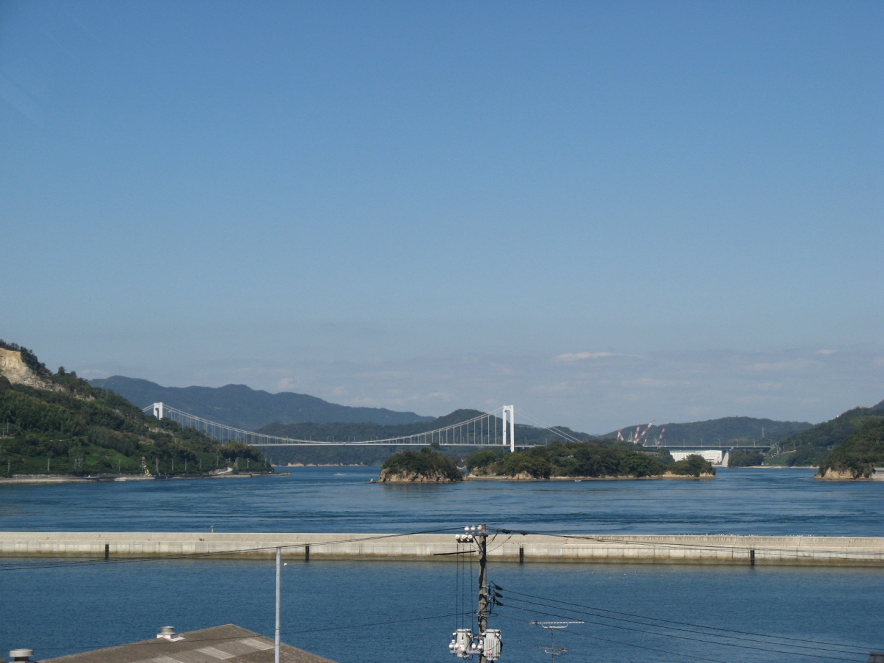 瀬戸内しまなみ海道を走ったときに、「伯方・大島大橋」を渡りました。昭和63年に完成したもので、伯方島と見近島(無人島)の間に架かる伯方橋325mと、見近島と大島の間に架かる大島大橋840mの二つの橋でなっています。見近島には徒歩や自転車で下りることができ、公園・キャンプ場などが整備されています。橋の近くからは村上水軍の本拠地のあった能島のほか、鯛崎島、鵜島など大小さまざまな島を眺めることができました。