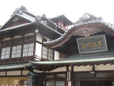 道後温泉のシンボル的な存在である、「道後温泉本館」は、明治27年に建築されたもので、共同浴場としては初めて国の重要文化財に指定されています。外観は道後温泉のシンボルにふさわしく木造三層楼の風格のある建物で屋上に、道後の時をつげる太鼓がある“振鷺閣”がとりつけられています。内部は広くて、昭和天皇がお使いになった“又新殿(ゆうしんでん)”や、夏目漱石をしのんで作られた“坊っちゃんの間”などがありました。霊の湯三階個室を使用したので、入浴後は“ぼっちゃん団子”を頂きながらゆったりとした気分を味わうことが出来ました。