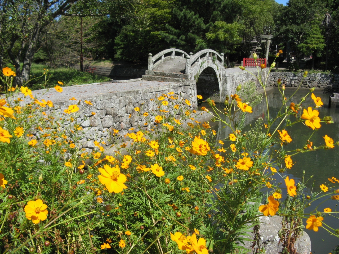 「伊美別宮社」は国東半島の北端、姫島村に行くフェリーが発着する伊美港の入り口近くにあります。平安末期(886年)に建立された神社で、石清水八幡宮の分霊を祀ったことが始まりだそうです。境内は広く、神社の入り口には江戸末期に架設された伊美別宮社参道橋(橋長:5.5m)や、小さな鳥居が並ぶ“陰陽神”、 国重要文化財に指定されている高さ4.81mの国東半島最大の国東塔などがありました。近くに寄られたら、是非、参拝されることをお奨めします。