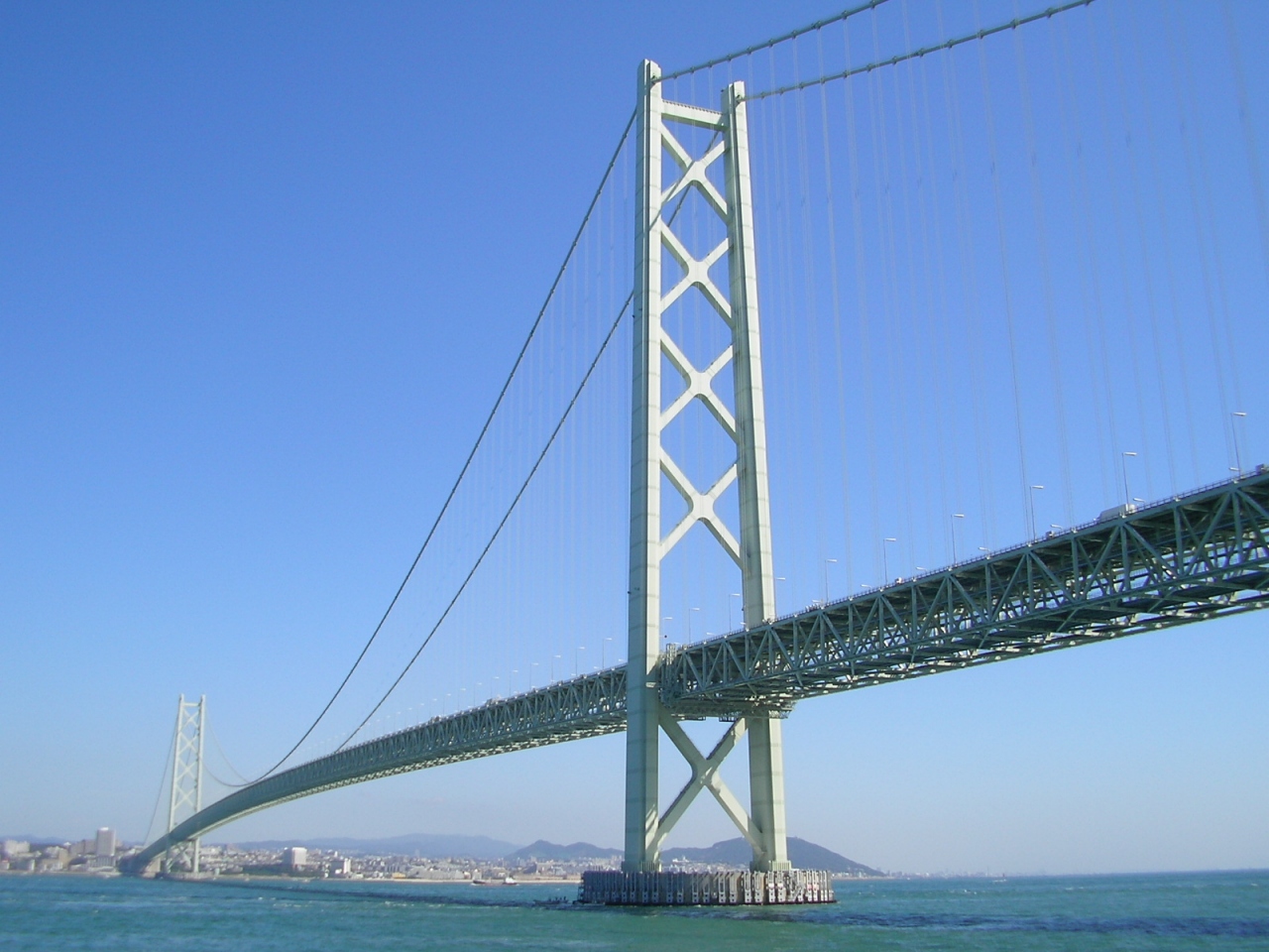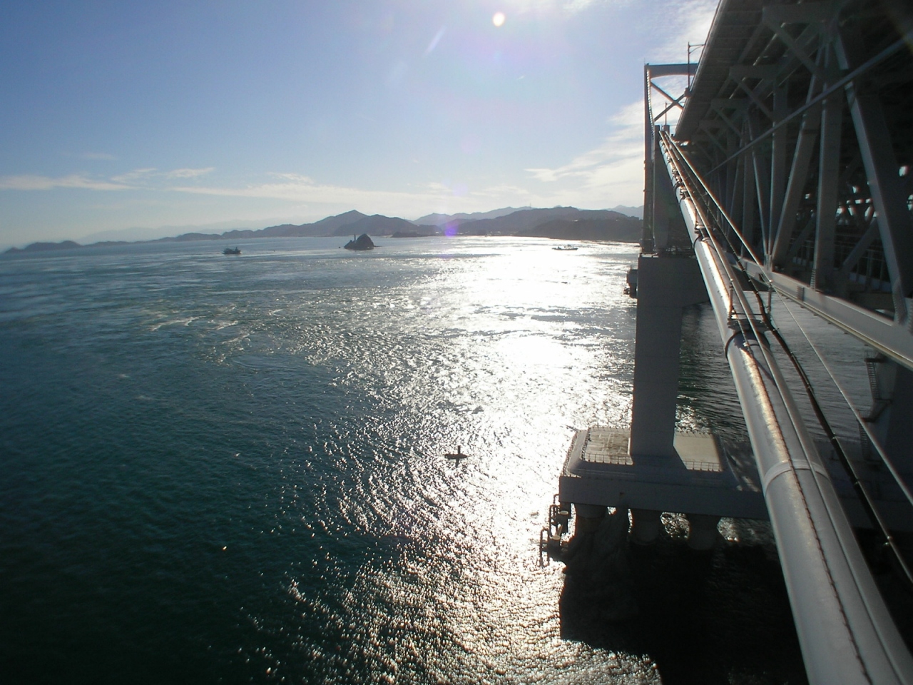 四国一周旅行のときに、明石港から出る“たこフェリー”の中から「明石海峡大橋」を眺めました。