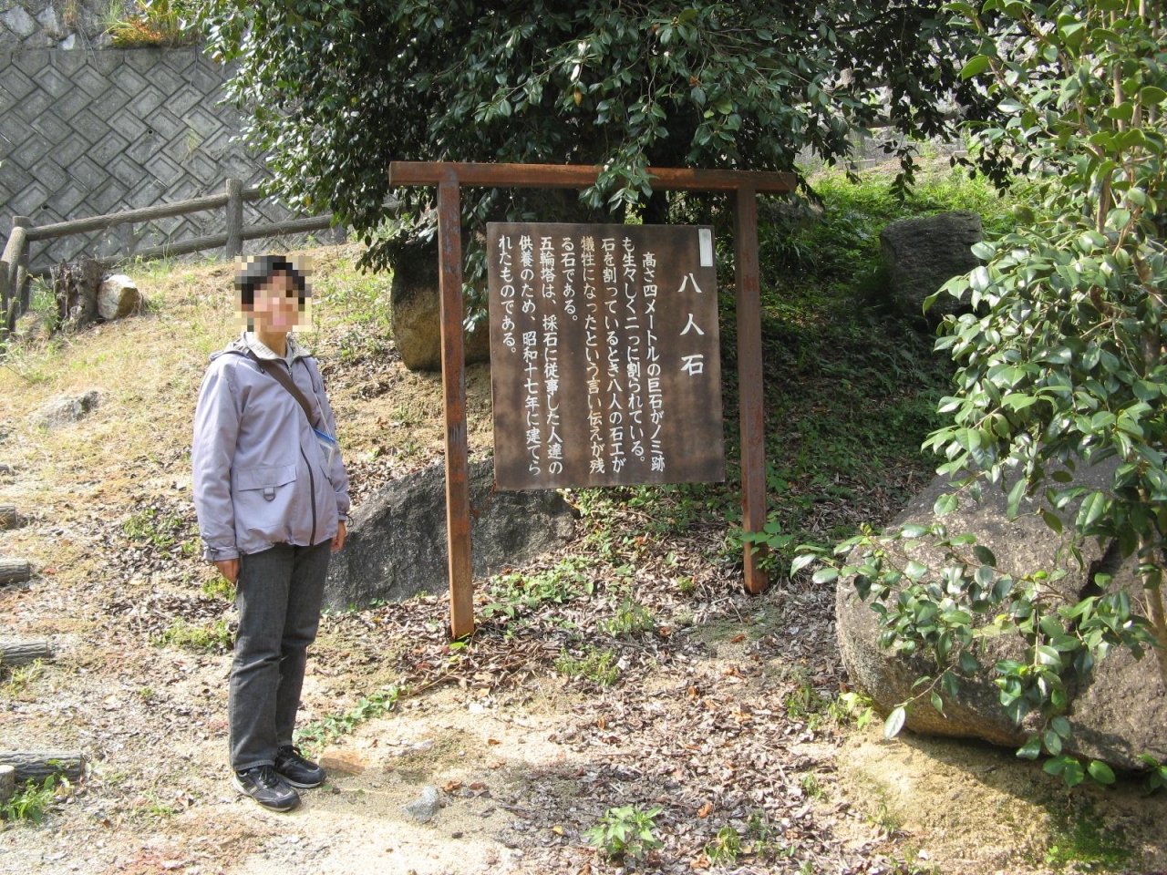 国道のすぐ海寄りにある八人石丁場。『高さ4mの巨石がノミ跡も生々しく2つに割られており、石を割っているとき8人の石工が犠牲になったという言い伝えが残る石です。』と説明案内板に表示されていました。よくぞ、こんな大石を切り出して、はるか海路を大坂まで運ぼうとしたことに驚かされました。