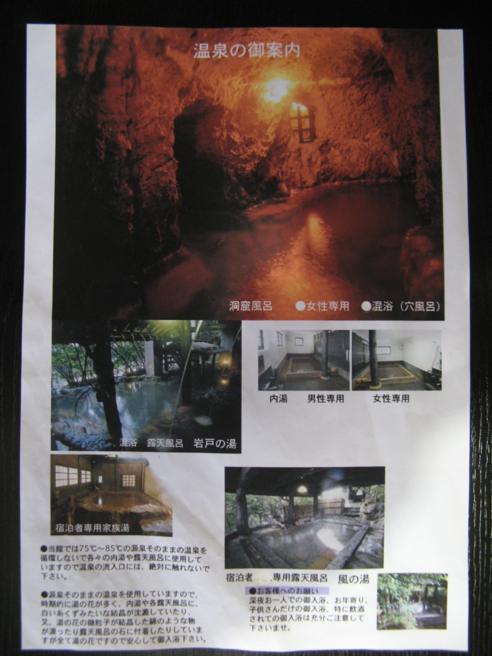 宿泊施設全体の雰囲気もスタッフの接客態度もよかった。お風呂は10年以上かけて手掘りしたという洞窟風呂が圧巻でその他の露天風呂や家族風呂も大変よかった。“入湯手形”(3箇所入れて1200円)を購入したのと、宿に直接支払い(1箇所500円)するなどしてして合計5箇所の他の宿泊施設のお風呂にも入ったが何処も同じような露天風呂でたいしたことがなかった。結果的にお風呂については、ここの宿のお風呂が一番良かった。