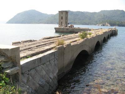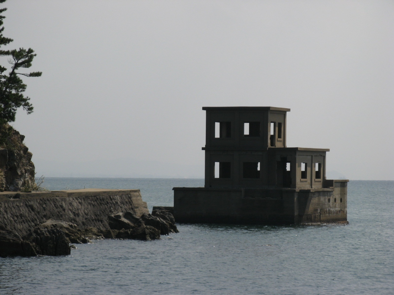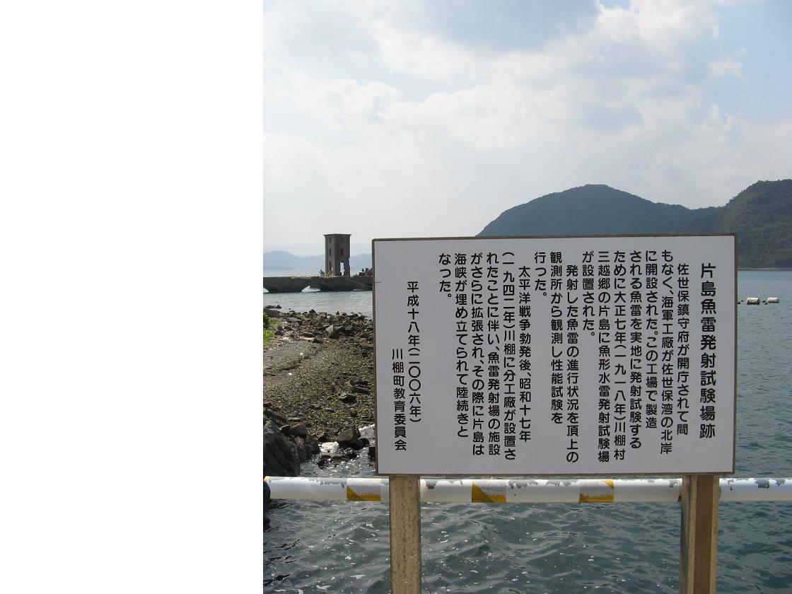 片島魚雷発射試験場は、佐世保湾北岸の海軍工廠で製造された魚雷を試験するために大正7年に建設、昭和17年に川棚に分工廠が設置されたことに伴いさらに施設が拡張されたもので、今も桟橋や発射台、監視所、建屋などが朽ちながらその姿を残す戦争遺構は、一種独特な景観を作り出しています。