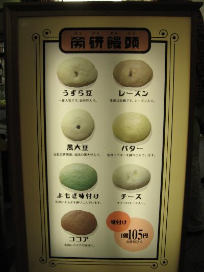 “労研饅頭”は昭和の初め倉敷の労働科学研究所で中国の饅頭を日本人向けに改良して作ったのが始まりだそうです。饅頭の種類としては味付け7種:うずら豆、黒大豆、ヨモギ味付け、ココア、レーズン、バター、チーズ 、あん入り7種 :つぶあん、こしあん、ヨモギつぶあん、ヨモギこしあん、白あん、南瓜あん、芋あんの14種類があり、1個100円前後です。一度に14個買うのは多すぎるので、松山に2日連泊したこともあって2日に分けて7個づつ買ってホテルで家内と二人で朝食の代わりとして食べました。購入したのが前日だったため、少し硬くなっていました。食べた感触としては“饅頭”というより、“しっかりした蒸しパン”という感じです。電子レンジで暖めればもっと違った食感になったかも知れません。味はすべてが甘さも控えめで素朴なものでした。- 旅行時期