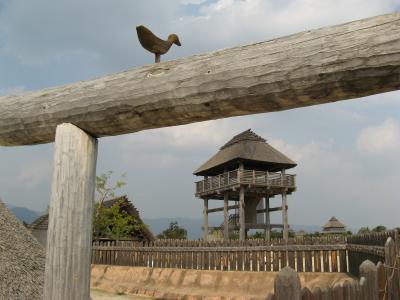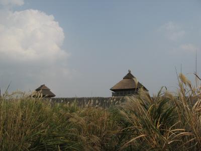 吉野ヶ里歴史公園は神埼市と吉野ヶ里町にまたがる日本最大級の規模の弥生時代の環壕集落跡で、1986年からの発掘調査によって発見され、現在は国営吉野ヶ里歴史公園として一部を国が管理する公園となっています。とにかく広い公園で、環濠や墳丘墓などの遺構や、魏志倭人伝に記された楼観跡と推定される物見やぐらや竪穴住居、高床倉庫などの建造物が復元されている他、展示室ではここで出土した、かめ棺や銅剣、土器、矢じりなどの実物や模型を見ることができるなど弥生時代における「クニ」の中心的な集落の全貌を知ることができます。