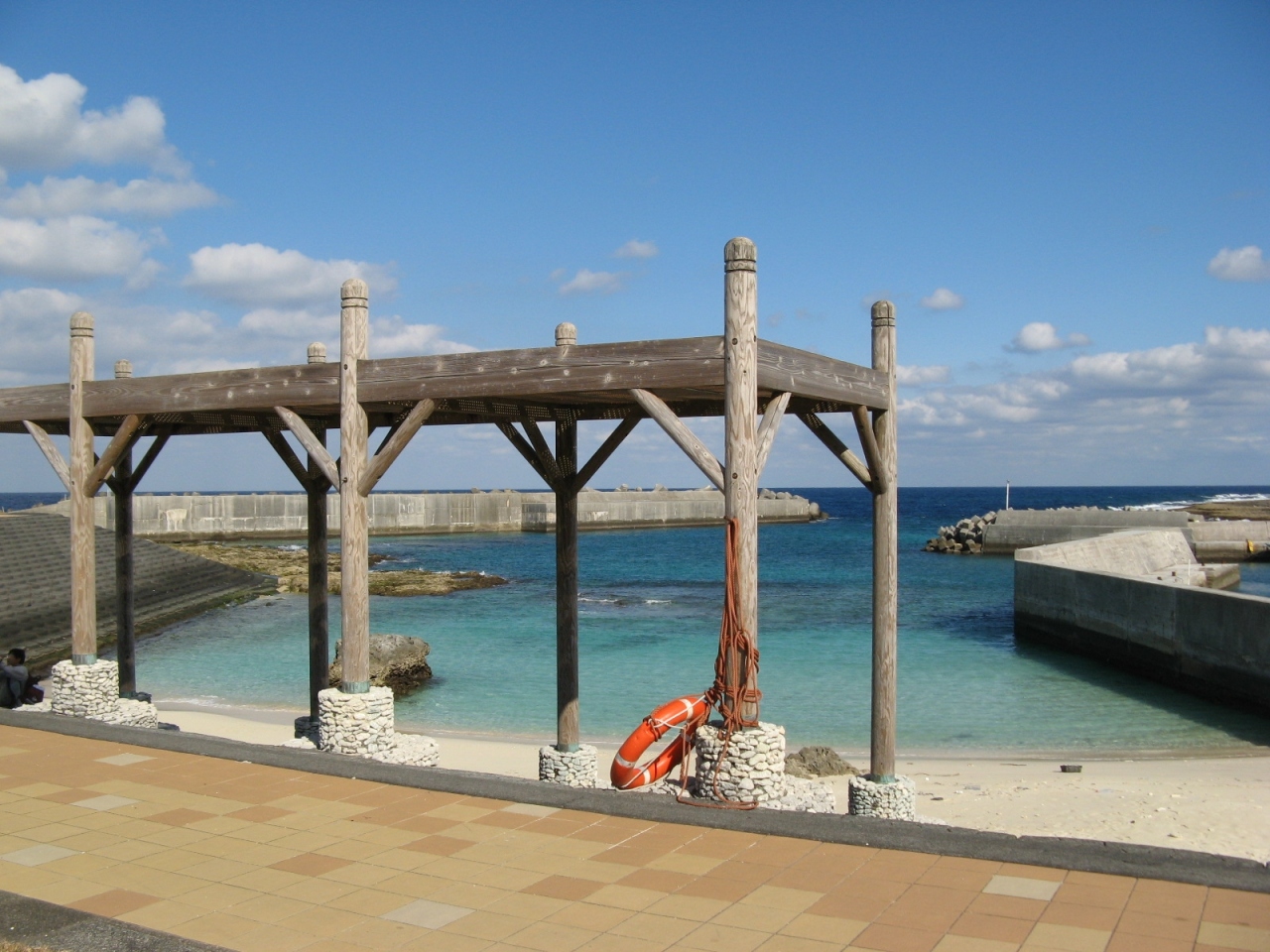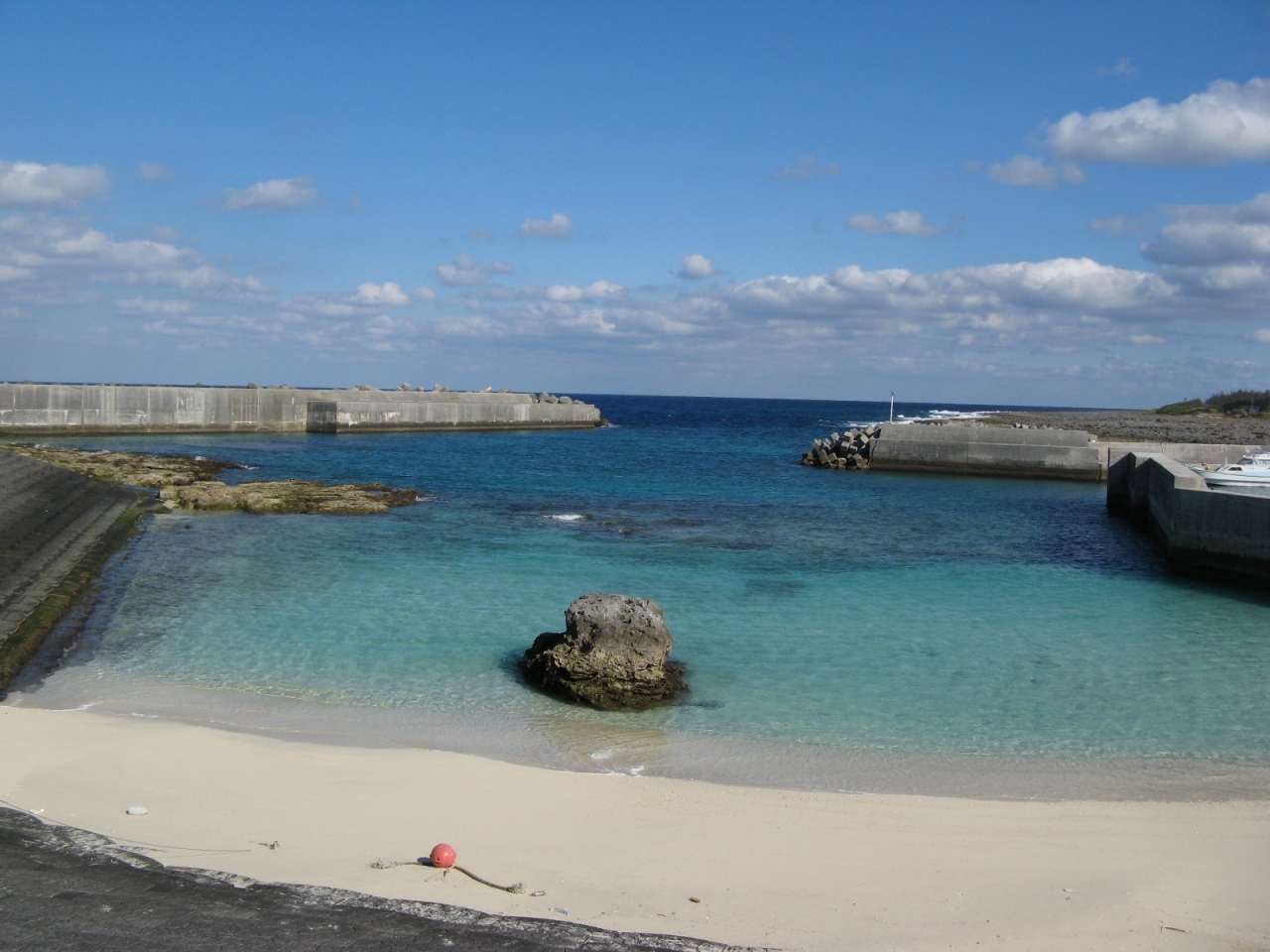 沖永良部空港より車で10分ほど、島の北東部にあるビーチです。ビーチの長さは300mほどもあり広い、ビーチ自体は荒めの白い珊瑚砂でとても綺麗し勿論水質は抜群によい。
