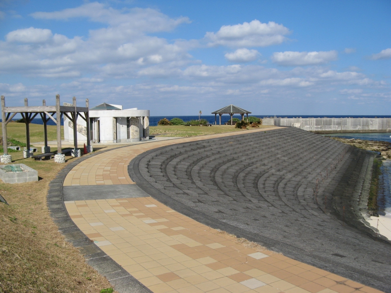 ビーチの前はきれいに整備され、食堂や野外ステージもありました。特に、ビーチの北側は笠石海浜公園という広い公園になっていて、展望台があり、そこから綺麗な海岸風景を望むことができ、綺麗に整備された散策路の周辺には亜熱帯の花や木々が植えられていて楽しく散歩することができました。- 旅行時期