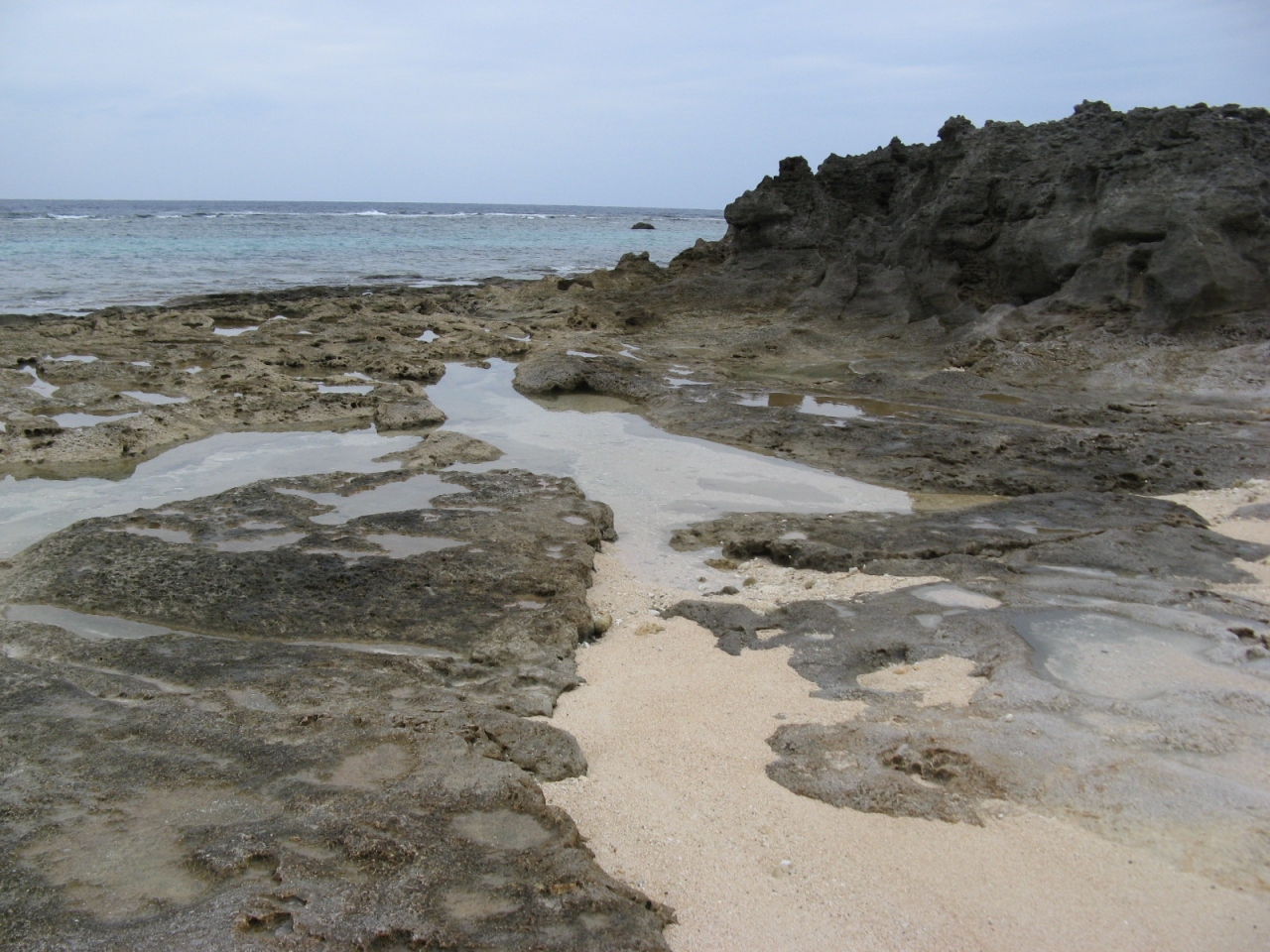 沖永良部空港でもらった観光パンフレットに「ビーチロック」が載っていたので訪れました。空港から車で1時間足らず、大津勘というところにあります。