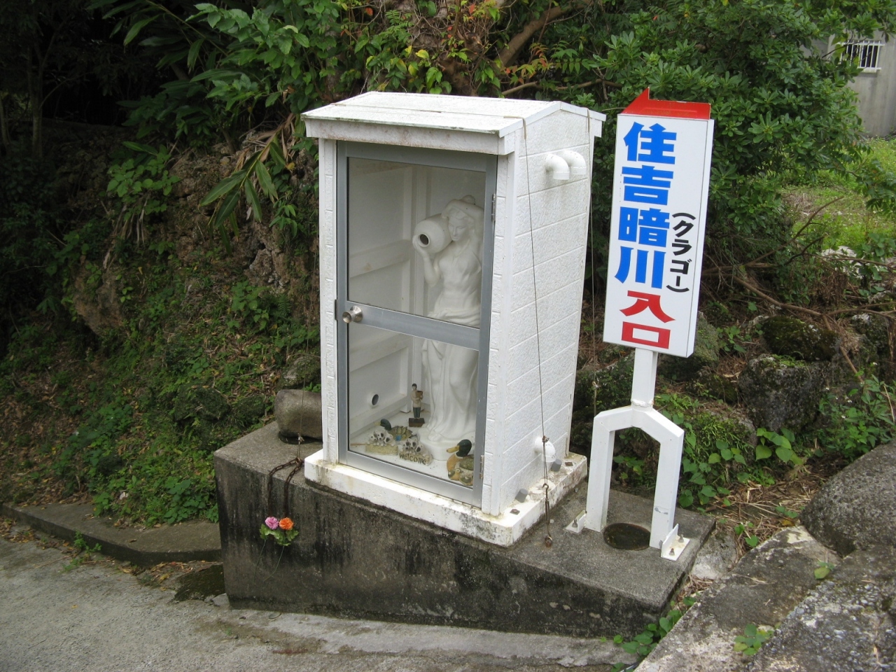 沖永良部空港でもらった観光パンフレットに「暗川(くらごう)・高倉」が載っていたので訪れました。空港から車で40分ほど、島西部の住吉という集落にあります。