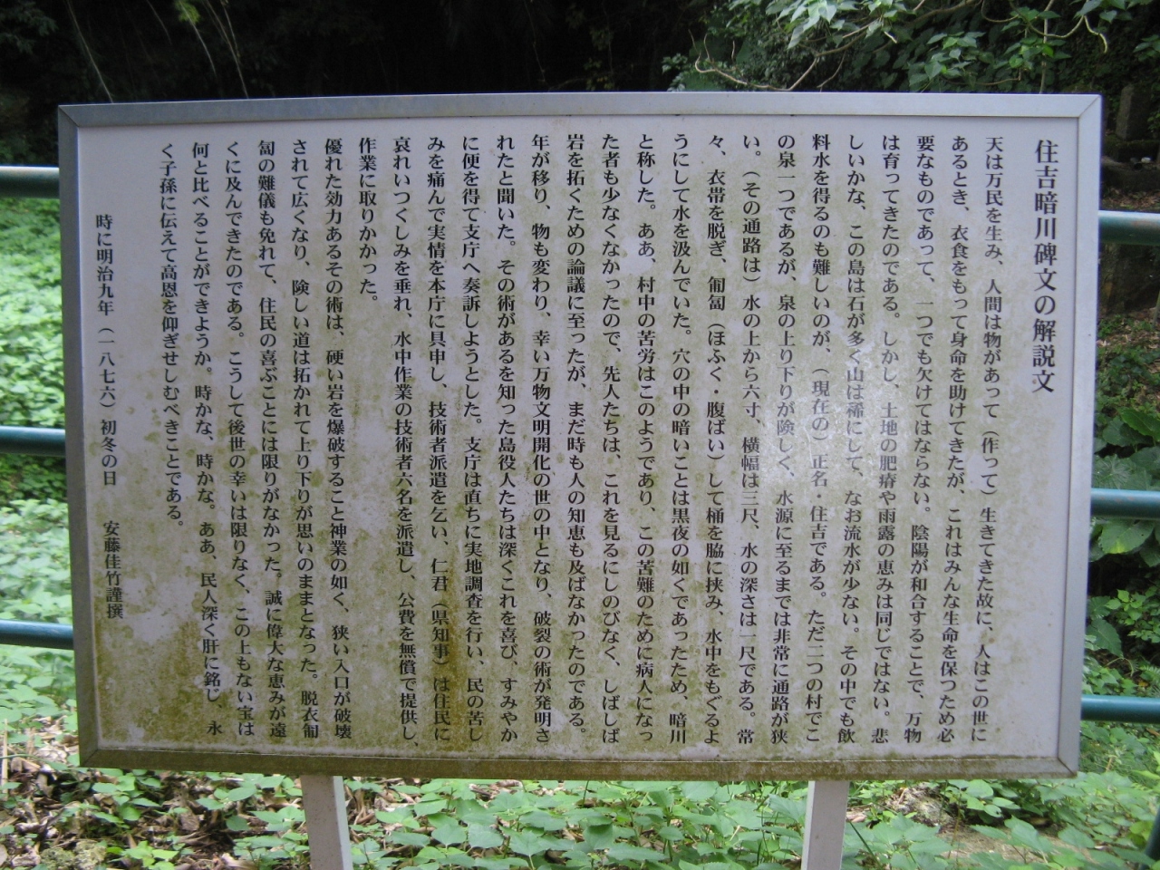 沖永良部島は、琉球石灰岩に覆われたサンゴ礁隆起で生成され島で、石灰岩は隙間が多く雨水が浸透しやすく、それによる浸食により地下に鍾乳洞が形成されその一部に穴が開き地下を流れる川を「暗川」と呼び、昭和38年簡易水道ができるまでは貴重な水汲み場だったところ。