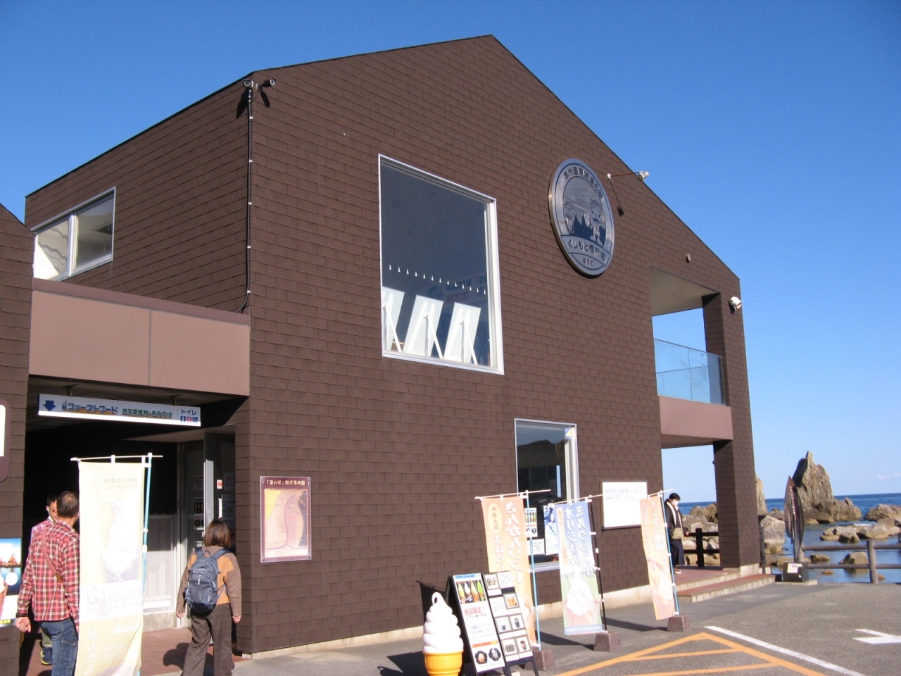 「橋杭岩」を眼前に眺望できる位置にあります。道の駅定番の観光情報や海産物や野菜、お菓子類などの販売等を行っています。ファーストフードコーナーではフライドポテトやいか焼き、焼きそばなどが販売されていて、地元のポンカンを使った“ポンカンソフトクリーム 300円”を買って外のベンチに座って頂きました。ポンカンソフトはポンカンの香りと濃厚な味がしてなかなかの美味しかった。目の前の橋杭岩の傍まで下りて行くことができる楽しい道の駅です。