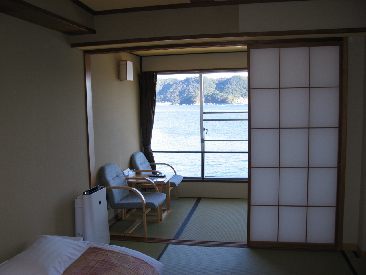 宿泊した部屋は広縁・バス付き10畳和室で大島が見えて気持ちよく滞在できましたが、部屋にフリーWifiが無いのは残念でした。大浴場も露天風呂は広くは無いが大島が見えて雰囲気は良かったが、水道水を加え加温しているらしく温泉の感じは全くなかった。