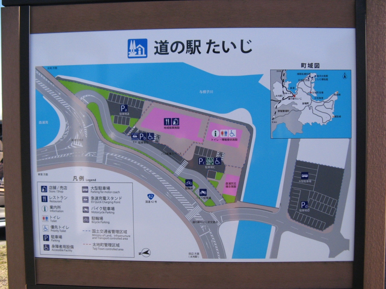 道路・観光情報などの提供はありますが、地元の直産品やお土産品などの販売や食事処もなくて“道の駅”としての楽しさはありません。施設は「すさみ町総合情報センター」になっていて、すさみ町の情報案内、移住・定住の案内、“イノブータン王国”の紹介などがありました。海岸沿いにあり景色が良く、トイレは24時間利用できるのでドライブの途中にちょっと休憩するにはいいところだと思います。