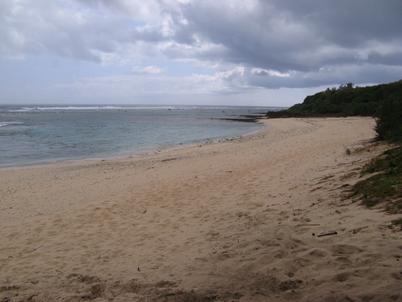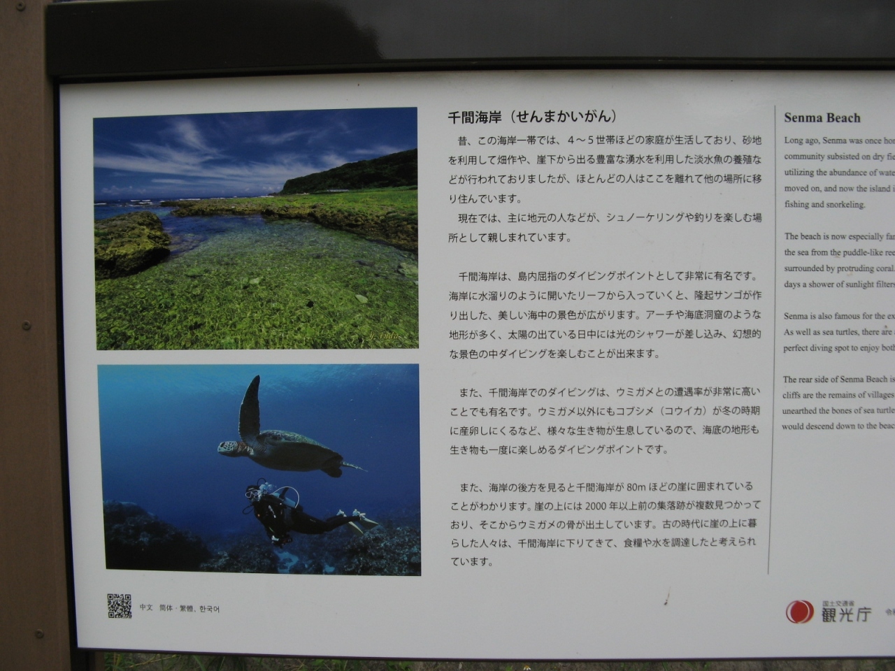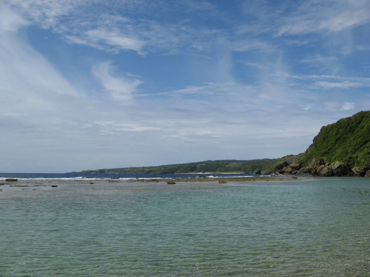 ビーチは砂浜は無く芝生を引き詰めたような感じで、足元はサンゴ礁に覆われています。水の透明度は非常に高く、ビーチの端には岩場もあって比較的浅瀬のラグーンが広いため海辺の生き物の観察や貝拾いができます。海水浴をするような場所ではありませんが、ダイビングスポットとしてとても良い場所だと思いました。