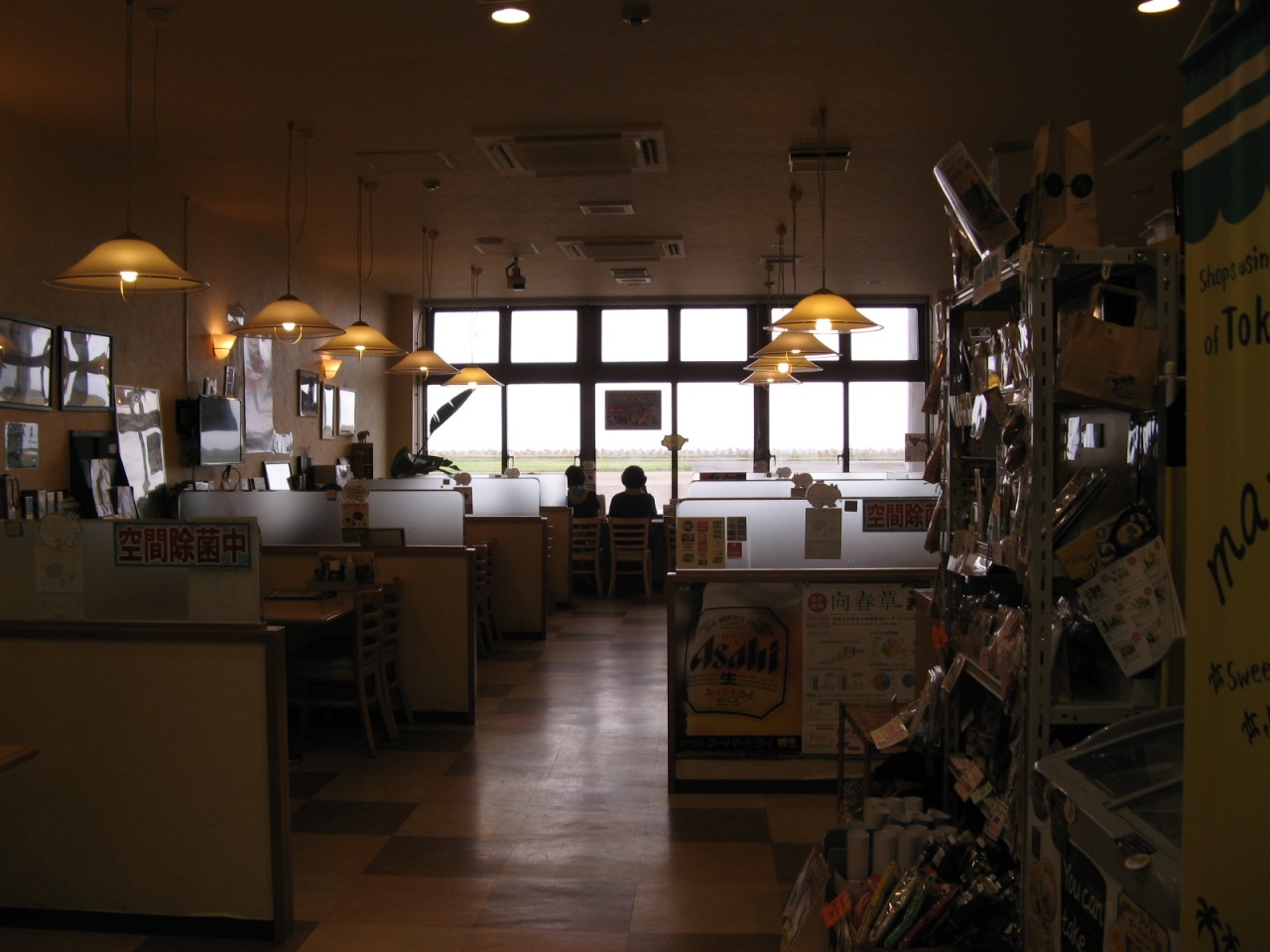 徳之島子宝空港内にあるレストランです。飛行機の待ち時間にグアバジュース(500円)を頂きました。窓側の席からは滑走路も見えまったりした気分になれました。