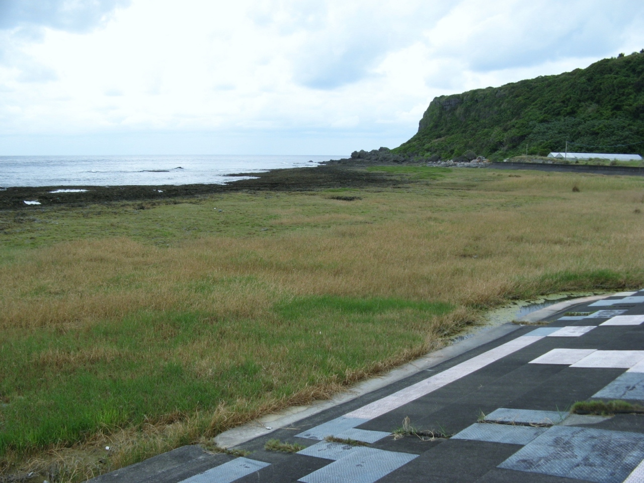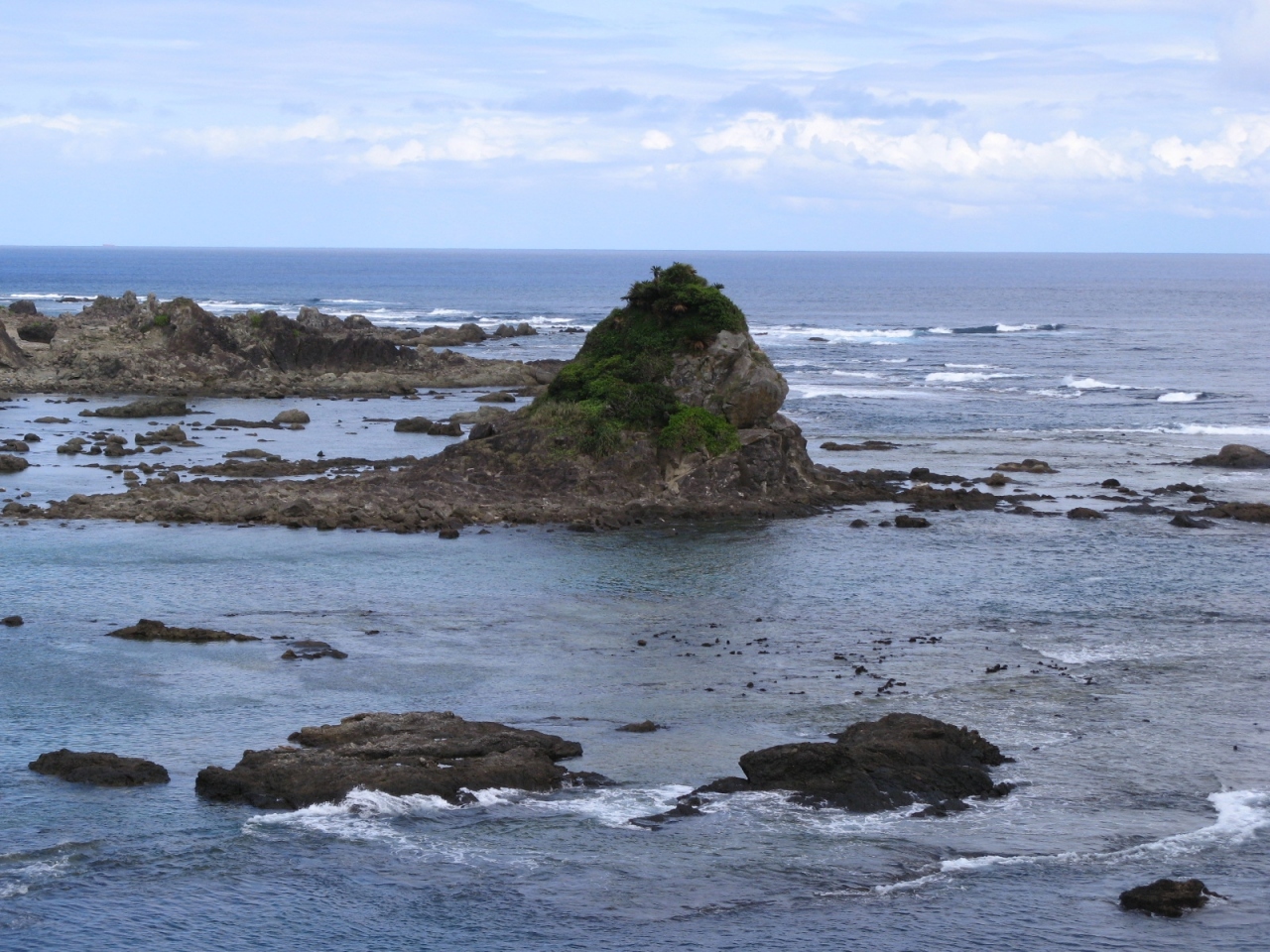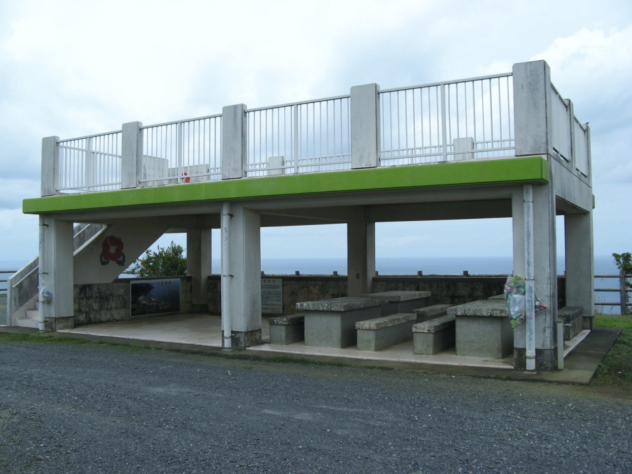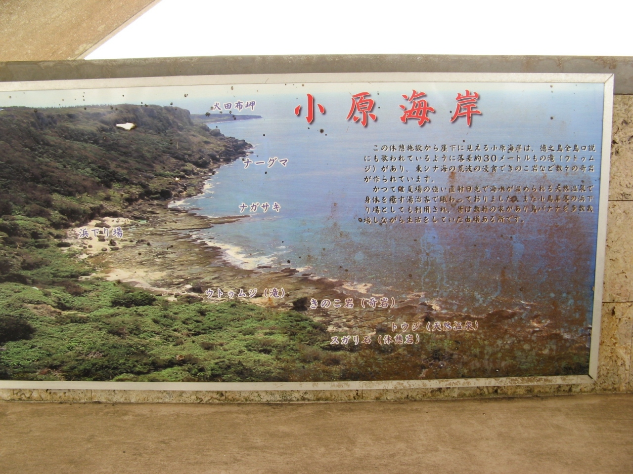 たどり着いた先、荒野の中にぽつんとコンクリート造りの立派な展望台があり、そこからは東シナ海の荒波によって浸食された小原海岸や遠くは犬田布岬まで望むことができました。