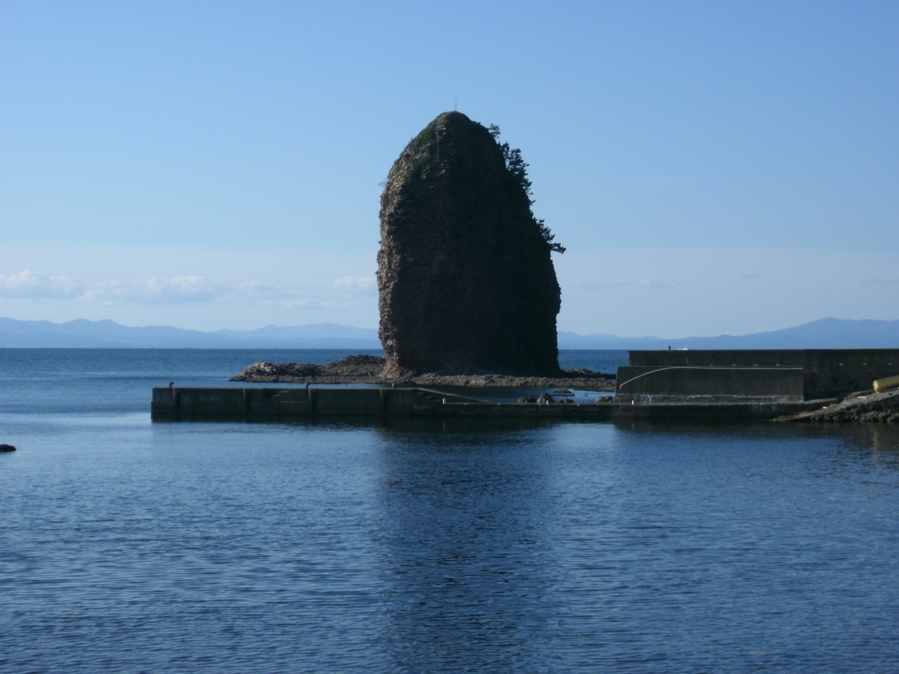 高さ30mほどの駒を立てたような大きな岩で、近づいて見上げると迫力があり、建物のすぐそばにあるので異様な感じがします。干潮時には歩いて渡ることができるそうですが、訪れたときは残念ながら潮が満ちていて渡ることができませんでした。なお、浅虫温泉駅から歩いてすぐの“サンセットビーチあさむし”の海岸からでも、北の方向遠くに「裸島」が見えるので、直近までいけない方は、ビーチから眺めればよいでしょう。- 旅行時期