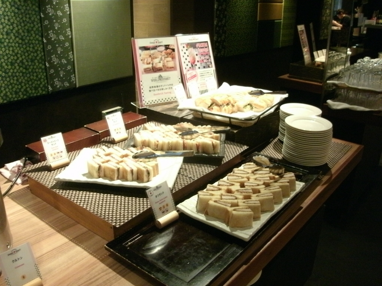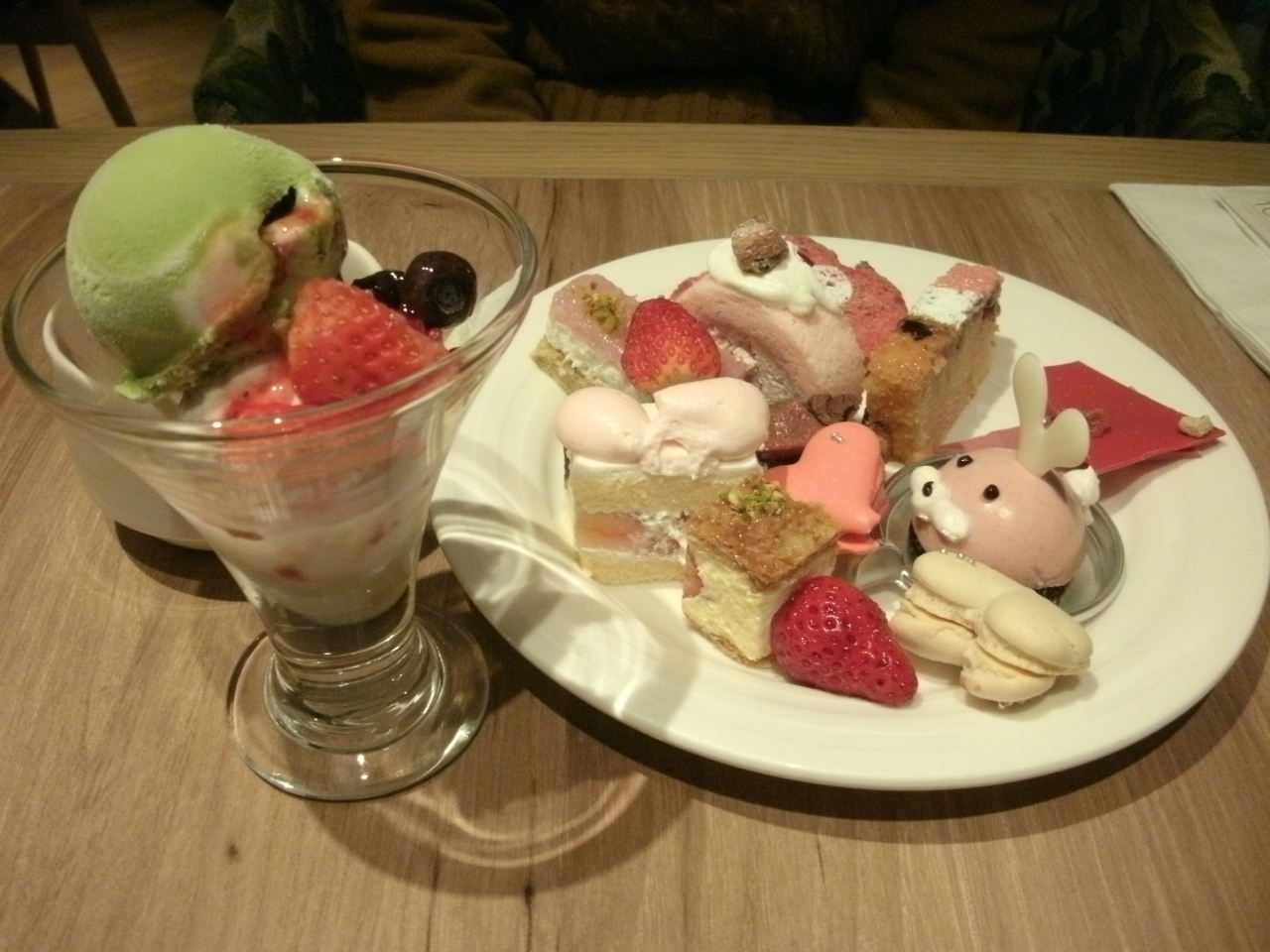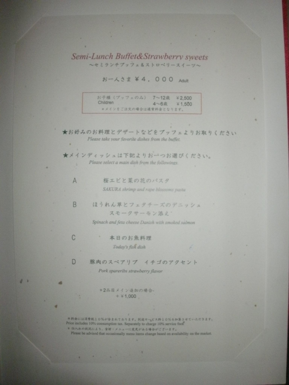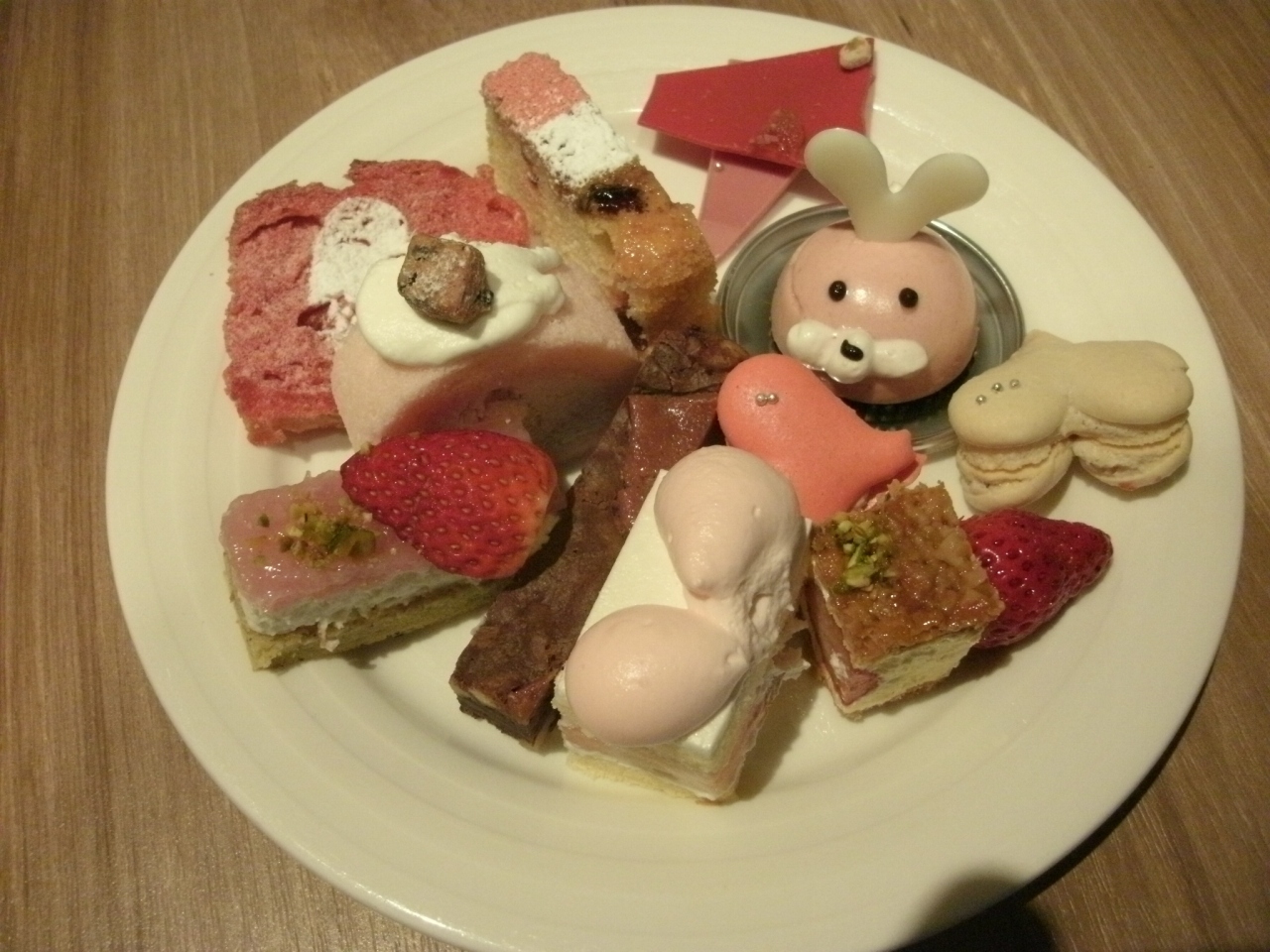 期間限定で開催されている“いちごのスイーツブッフェ(90分制、3500円)”を頂きました。内容は、いちごのスノーボール、パウンドケーキ、マドレーヌ、ヨーグルトのムースなどいちごのケーキ類が21種類とアイスクリーム6種、ソフトクリーム、ストロベリーチョコレートファウンテン。ライトミールとして6種のサンドイッチ、白身魚とエビのボンベイ風、ミートローフ、パスタ、カレーなど。