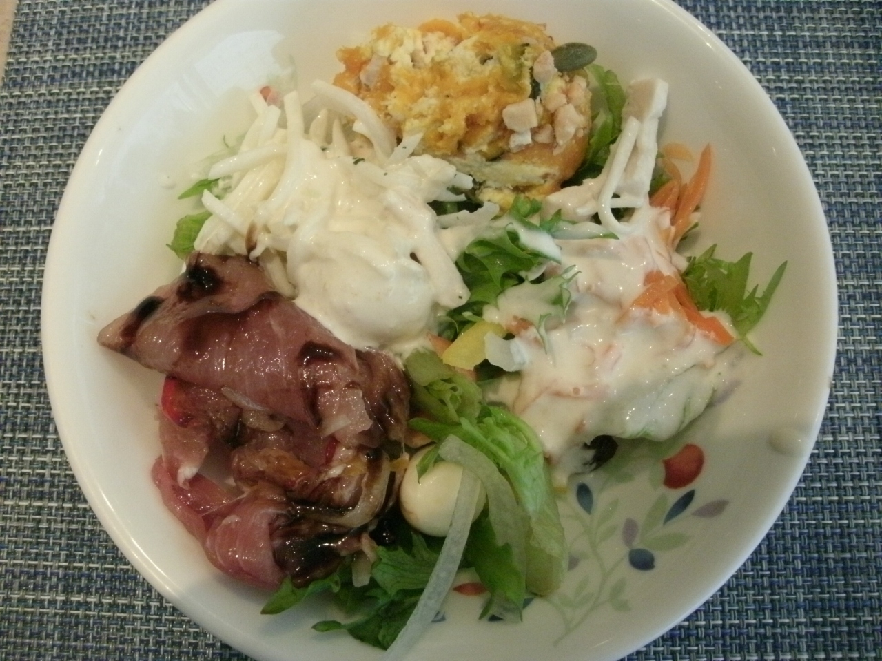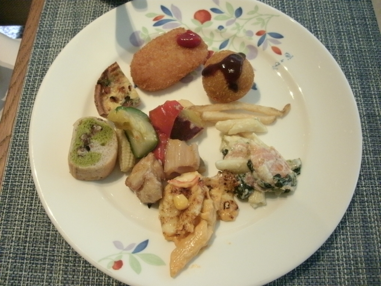 メインディッシュは“豚肉スペアリブ苺のアクセント”を選びました。前菜にはサーモンとポテトのペンネグラタン、チキンと彩り野菜のグリル、生ハムとモッツァレラチーズ、明太子といくらのスパゲティサラダ、ブロッコリーとベーコンのキッシュなどがあり、一流ホテルらしくどれも丁寧に作ってあって美味しかった。デザートは、苺のムースや苺パイ、苺のショートケーキ、苺大福、苺ゼリーなど10種類ほどで見た目も華やかで美味しかった。