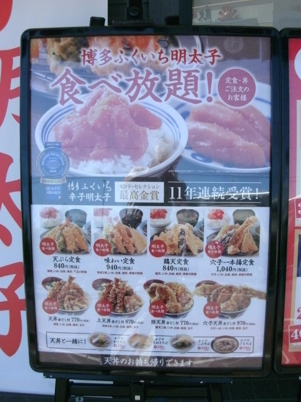 食べ放題の明太子は、博多ふくいちの中切れが容器にたっぷりと入って、ご飯にたっぷり盛り付けて頂いたが辛さはあまり無く上品な旨みでなかなか良かった。