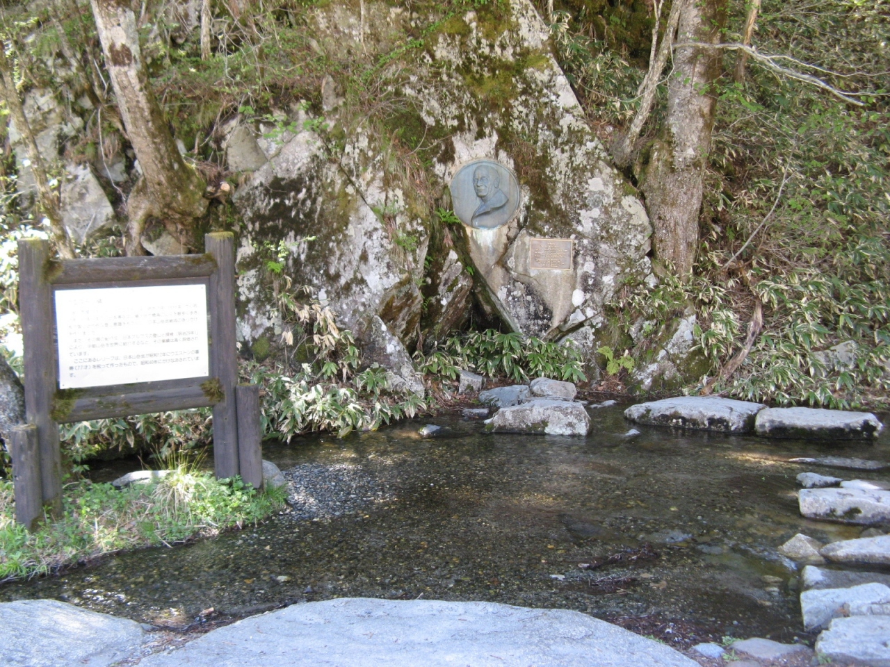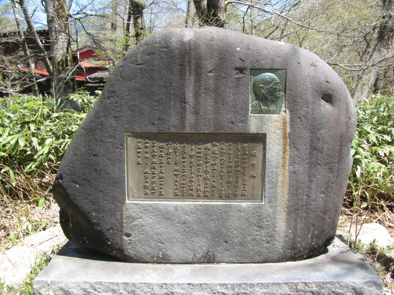 日本アルプスの美しさを世界に紹介し、日本人に登山の楽しみを教えてくれた英国人宣教師ウェストンの顕彰碑です。河童橋から梓川右岸を歩いて20分ほど、遊歩道の傍の岩肌にレリーフが埋め込まれています。レリーフの前は水が流れていて飛び石を渡っていくと傍まで行けます。知らないと見過ごしてしまいそうな小さなサイズなので見逃し注意です。