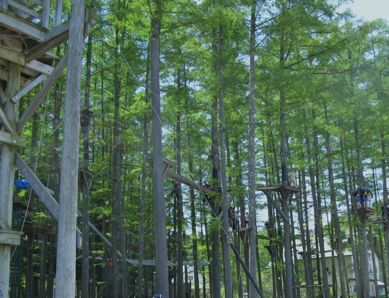 白馬岩岳マウンテンフィールドの岩岳ゴンドラリフトの山麓駅の近くにあります。空中アスレチックは8mほどの高さの様々なエレメントを体験できる基本コースと基本コースに加え10mの高さからバンジーなどができるフルコースがあります。基本コースでもとても怖かったですが、約二時間岩岳を見渡しながらめったに経験できない空中アスレチックは大人でも子供でも楽しめると思いました。広い駐車場が受付建物の向かいにあり、予約はホームページからできます。
