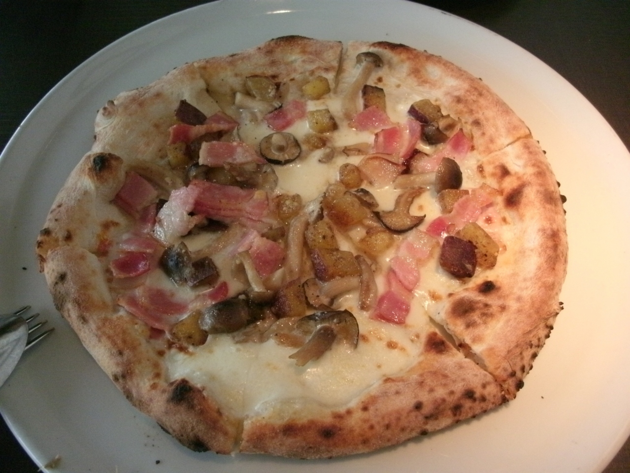 ピッツァ釜のあるオープンキッチンでシェフが粉から作るピザは、生地がモチモチしていてとても美味しかった。事前にフロアスタッフの方が『ピッツアはシェアしますか?』と聞いてきたので『はい』と答えると、ピッツアは一枚ずつ時間をおいてサービスされたので、アツアツを頂くことができてとても良かったし、細かい心遣いが嬉しかった。