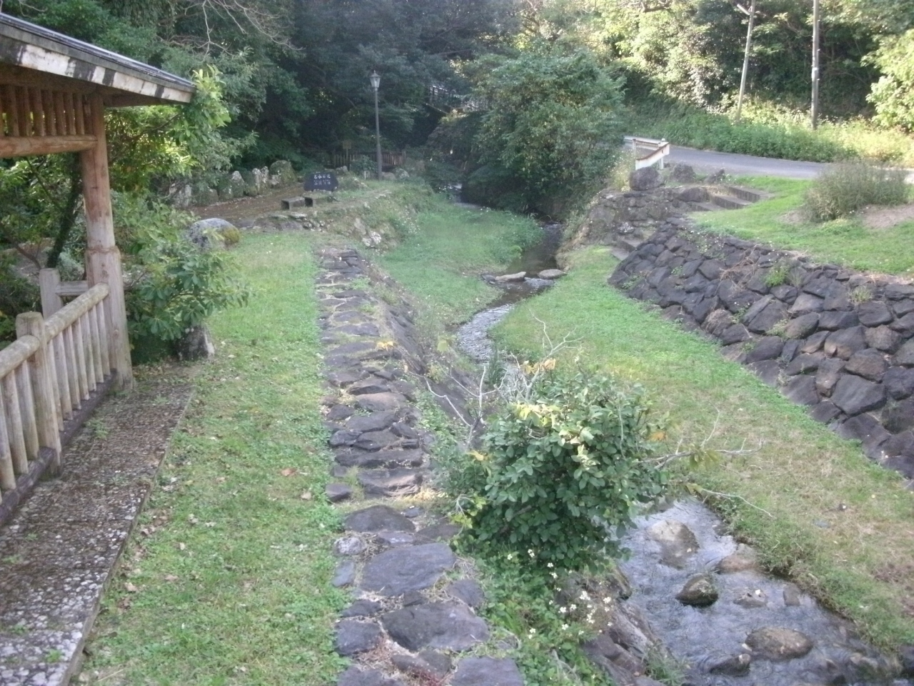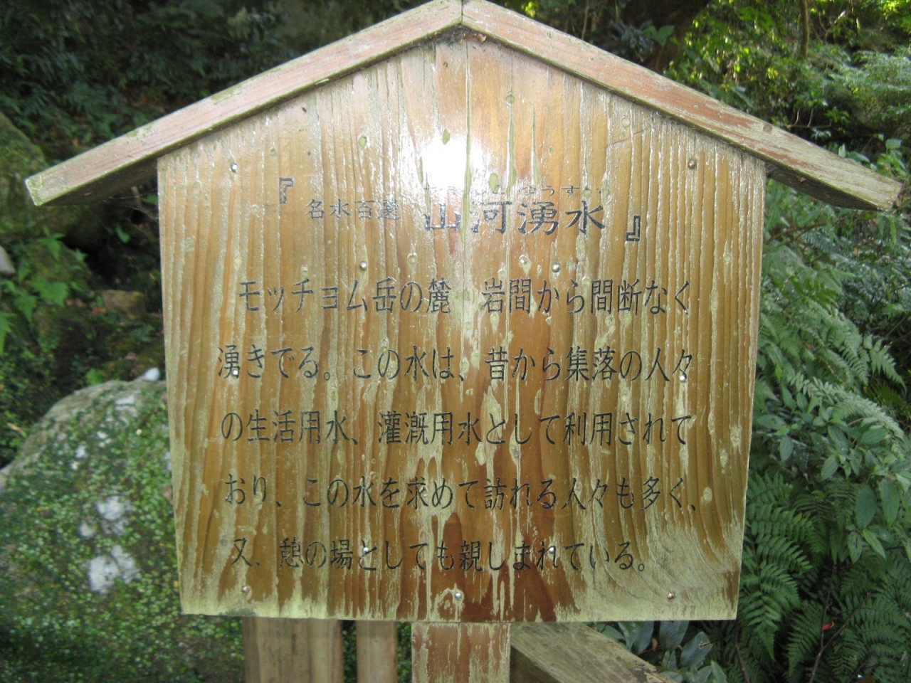 公園の西のはずれに、名水百選に選ばれている山河湧水(やまんご)という湧き水が湧いていて、誰でも飲めるように柄杓も並べられていました。飲んでみましたが、まろやかで美味しい水でした。なお、ここの公園は“山河”と書いて「やまんこ」と読ませるのに、湧水は「やまんご」という石標が付いているのが不思議に思いました。