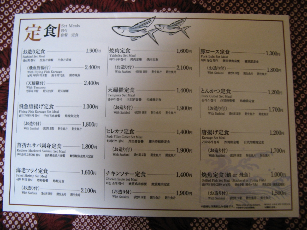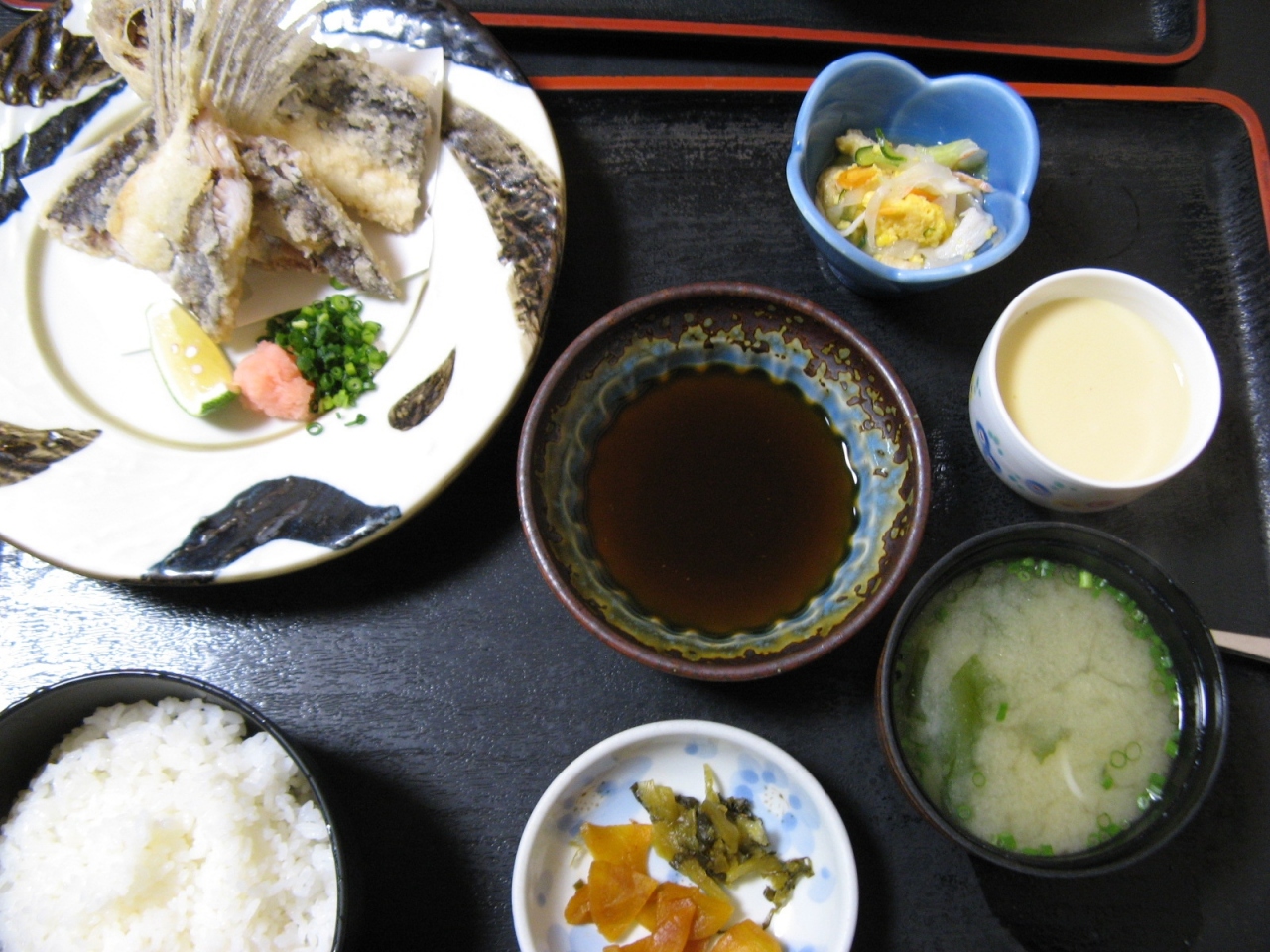 注文したのは、“首折れサバ刺身定食 \1800”と“飛魚唐揚げ定食 \1300”で、二人でシェアーして頂きました。首折れサバは他店に比べて少し身が厚めに切られていて、鯖とは思えないほどコリコリで美味しかった。屋久島に行ったら、また、利用したいと思いました。- 旅行時期