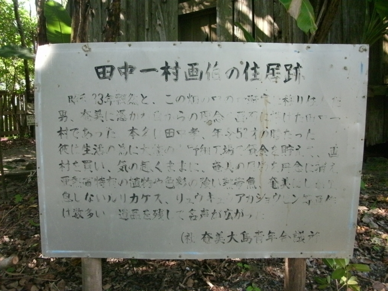 木造平屋建ての一軒屋は雨戸が閉まっていて中を見ることができなかったが、とても人が生活していた家とは思えないほど質素なものでした。それでも、資料によると一村はこの家をとても気に入っていたそうで、亜熱帯の植物に囲まれた静かなこの家で、奄美の植物や動物を描き続け独特の世界をつくりあげた一村の人生の最期を考えたら少し寂しくなりました。管理人はおらず拝観は自由で無料です。- 旅行時期