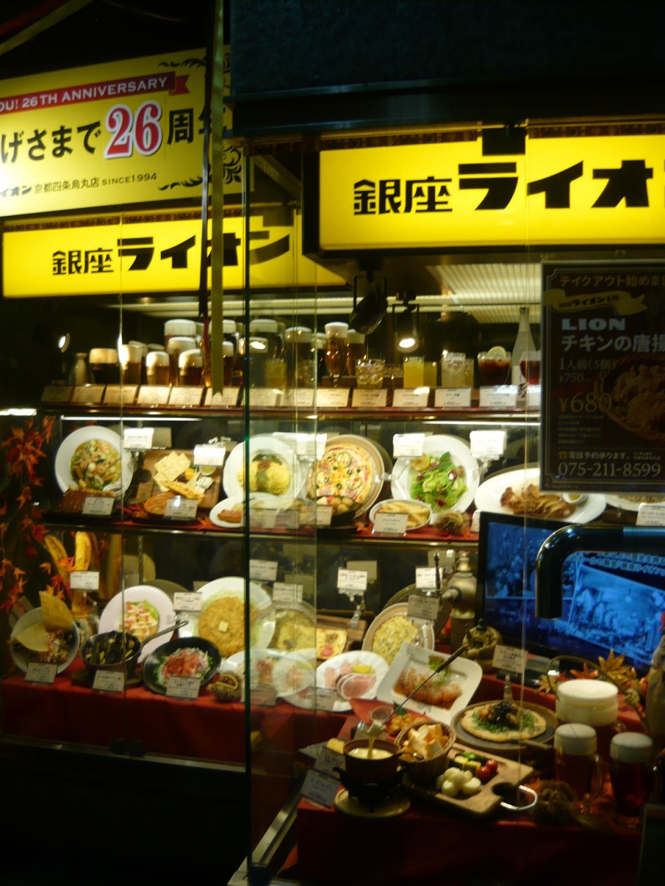 場所は阪急四条烏丸駅・地下鉄烏丸駅から歩いて3分足らず。駅から地下道直結ですので雨にも濡れずに到着できます。平日の16時30分から18時までの間やっているタイムサービス(サンキューエビス)を利用しました。エビス生ビール、エビスプレミアムブラック、エビス&エビス、琥珀&ブラックなど5種類のエビスビールが小グラス一杯390円で頂けます。この日は唐揚げや出し巻、茸のホイル焼きなどをあてに全種のビールを頂きました。ビール好きにオススメお店です。