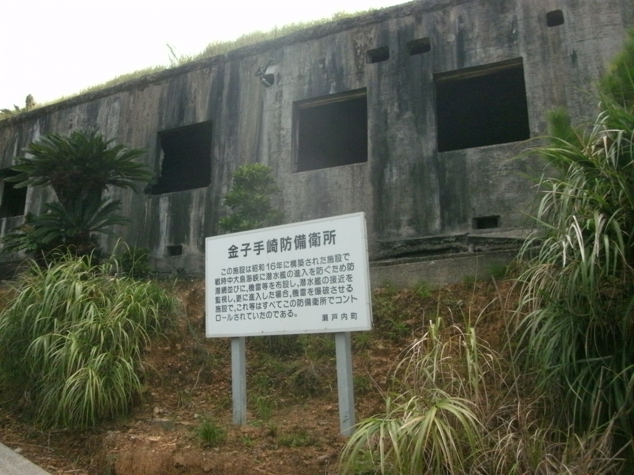 加計呂麻島の東端にある旧日本陸・海軍時代の施設跡を戦跡公園にしたものです。広い敷地内には砲台跡や弾薬庫跡、防備衛所跡、探照灯台跡などの軍事施設の跡があります。いづれも頑丈なコンクリート造りの施設で、中に入ることができる建物もあります。7年ほど前にも訪れたことがあるのですが、訪れる人も少ないのか、落書きをするなどして建物を損壊する人もいないようで綺麗に保存されていて良かったです。建物類には手を加えず、周辺の通路や法面などが綺麗に整備されている点も良かったです。