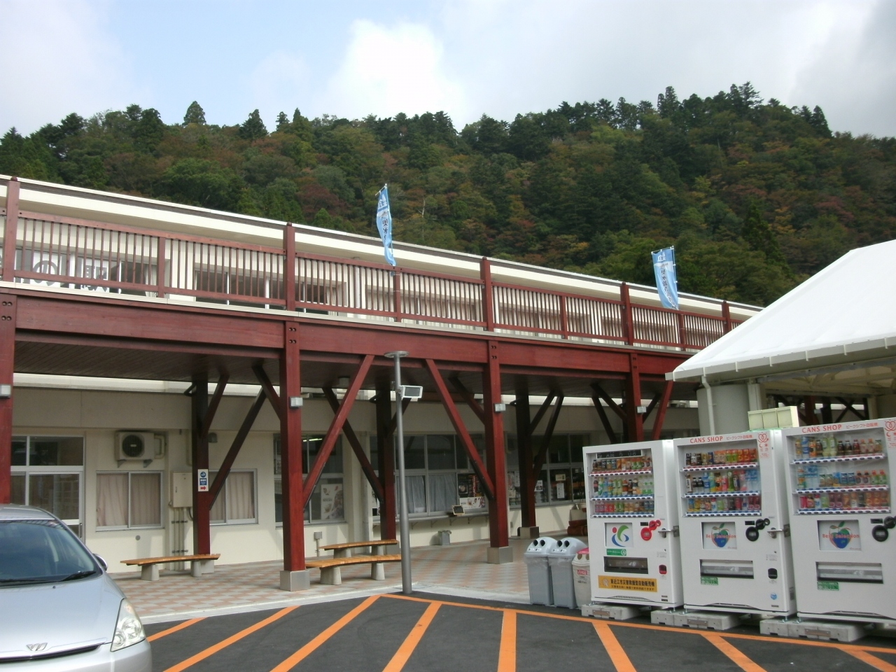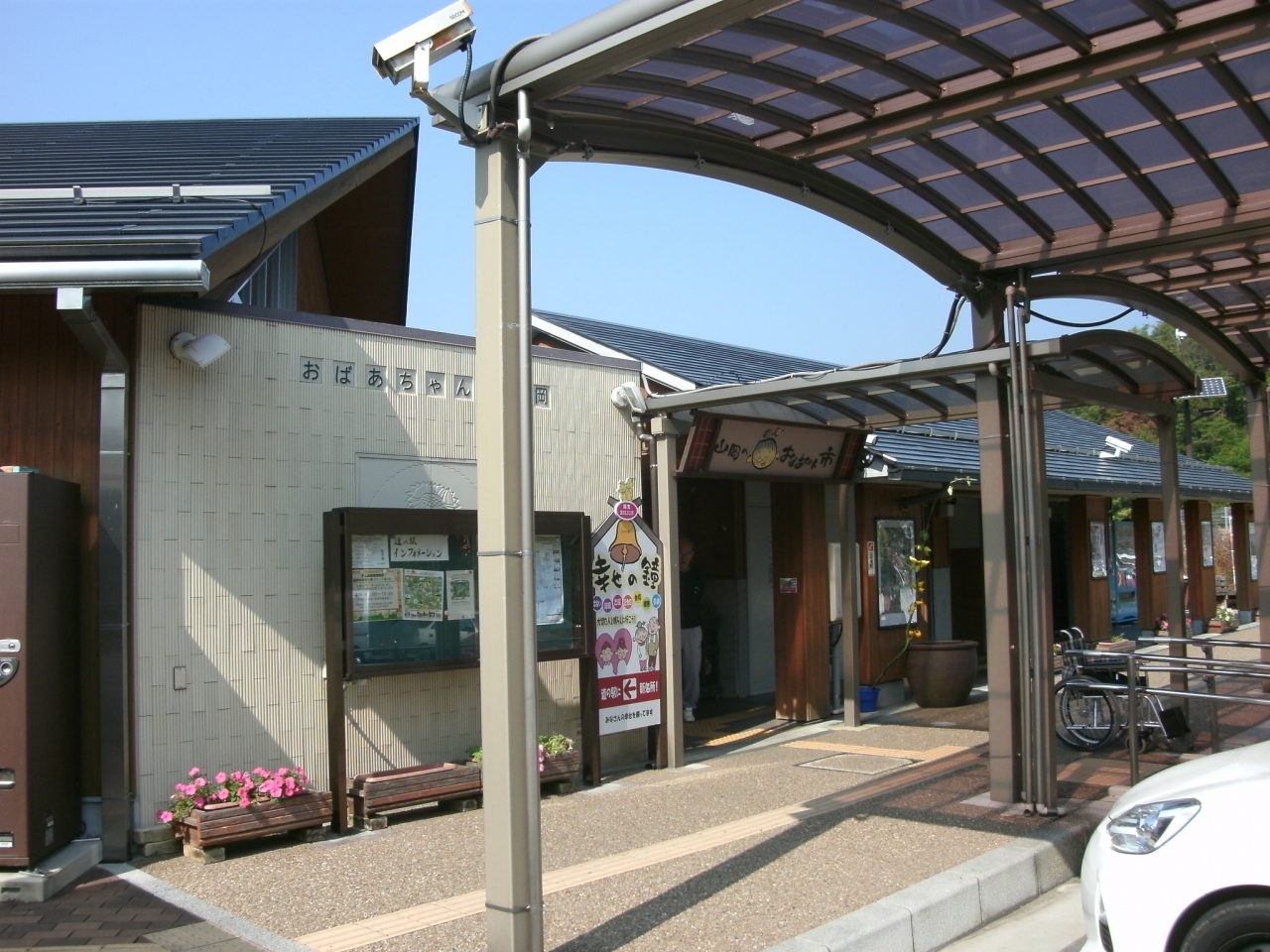 三重県と滋賀県の県境近くの、山の中にある道の駅です。廃校になった中学校を再活用した施設で、従来の道の駅機能に加え、市役所の出張所や診療所も兼ねていて、駐車場には緊急時のヘリポートもありました。産直品売り場では名産の永源寺こんにゃくや政所茶、アマゴの甘露煮、はちみつ、木工作家が手掛けた作品などが目立ちました。