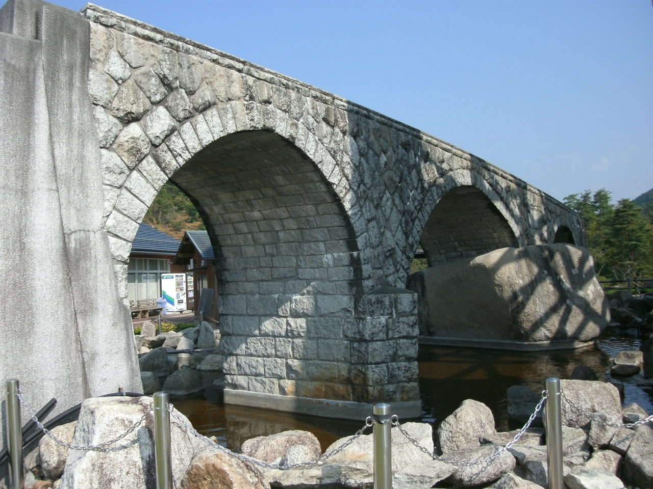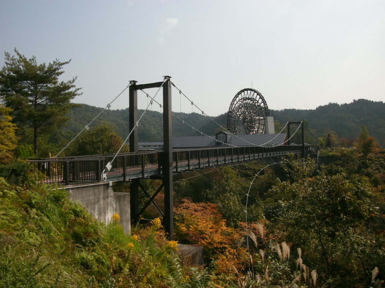道の駅の施設としてはそれほど大きなものではありませんが、敷地内には日本一の大きさだという木製水車や小里川ダム水没地域から移設した與運橋(ようんはし)があります。ランドマークになっている高さ24mの木製水車は遠くから観ると観覧車の様な大きさでびっくりしました。三連式石造りアーチ橋の與運橋も重厚で見応えがありました。