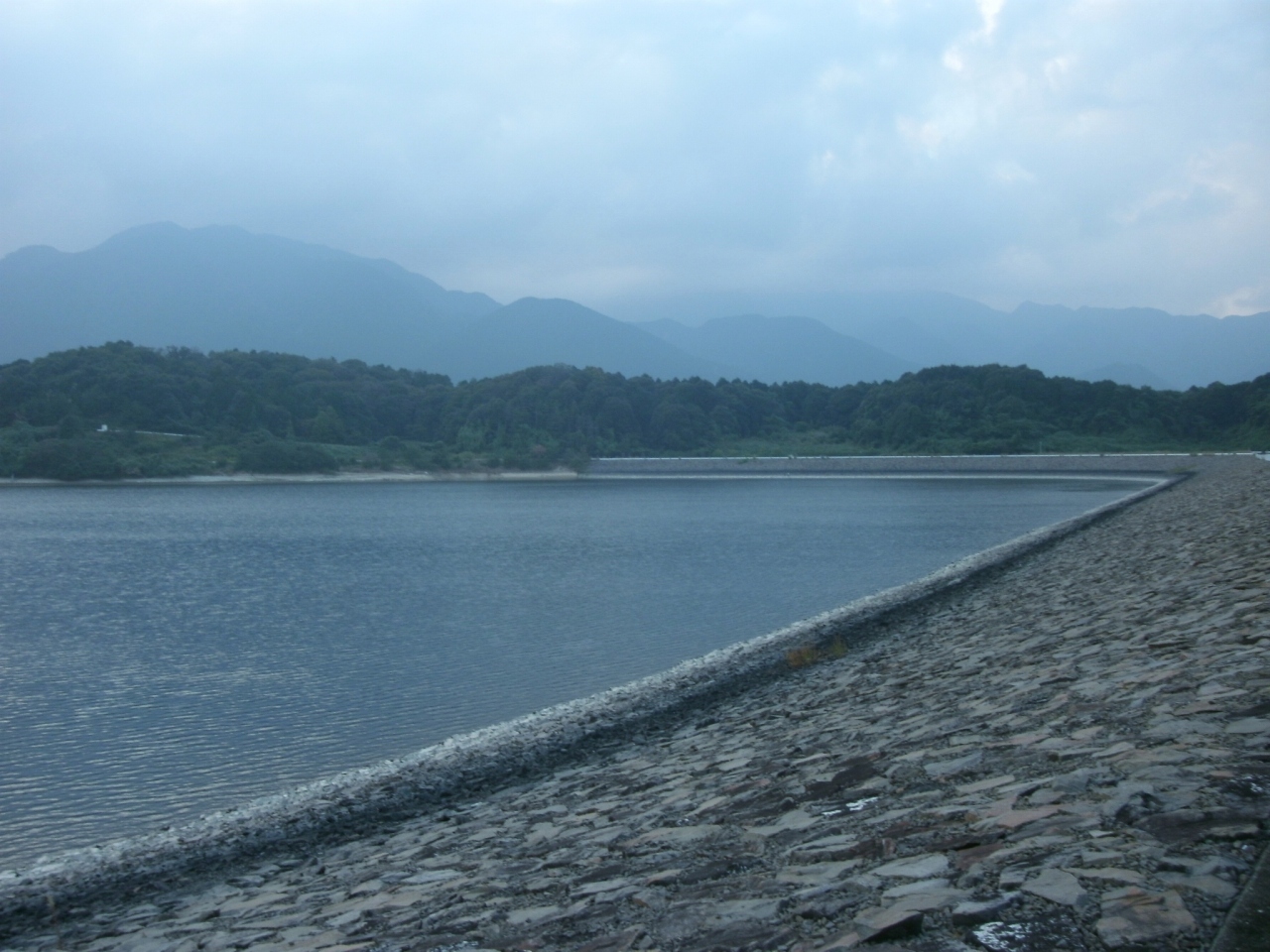 アースダムで堤高も低いことから一見ダムのような感じではなく、大きな野池の様で、調整池堤の下流側はロックフィルダムのように石貼り加工が施されています。下流には田園風景が広がり、灌漑用水の要といった雰囲気です。