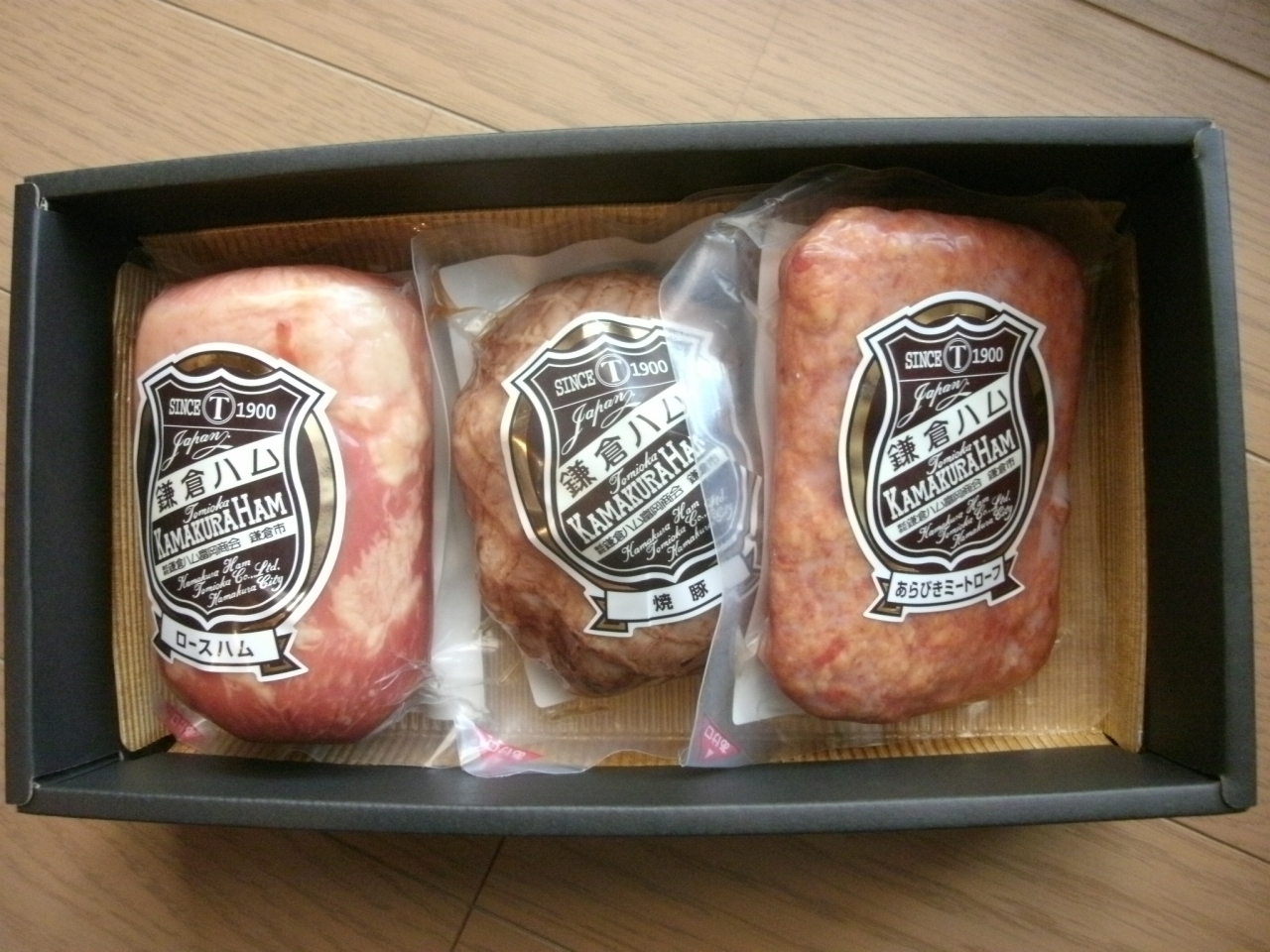 JR鎌倉駅から歩いて5分足らず、小町通りの中ほどにあります。明治33年創業という有名なハムの名店です。ハムやベーコン、焼き豚、ミートローフ、ローストビーフなど様々な食肉加工品を販売しています。自家用にロースハムと焼き豚、あらびきミートローフを購入しました。化粧箱の中に、おいしく食べるポイントなどが記載された“ハム事典”と称する小さな冊子が入っているのが良かったです。お土産にする場合、“要冷蔵”商品は持ち帰るまで保冷剤や保冷バックが必要ですが、ジャーキーやサラミなど常温で持ち帰れる商品もありました。