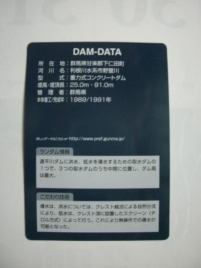 ダムを見学した後、このダムを管理する、道平川ダム管理事務所に立ち寄ってダムカードを頂くことができました。ダム周辺は観光するような場所も無いので普通の観光客が行って面白ところではありません。ダムマニアは道平川ダム見学の前に立ち寄って、そのあと、管理事務所でダムカードを入手されると良いでしょう。- 旅行時期