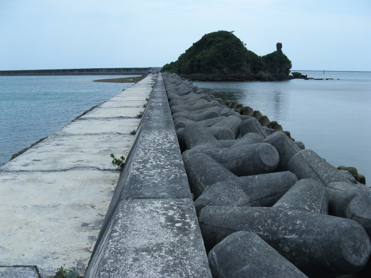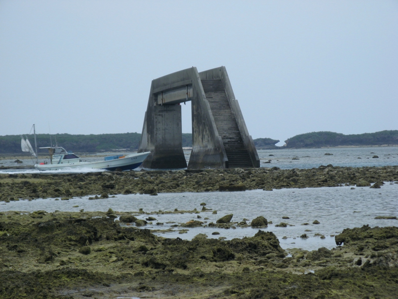 久米島と奥武島の間にある歩道橋のようなコンクリート製の橋です。ちなみに名前の“シール”はこの橋がある地域の名称で、“ガチ”は沖縄で“魚垣”、つまり、『シール地域にある干潟の魚垣に渡る橋』という意味だとか。