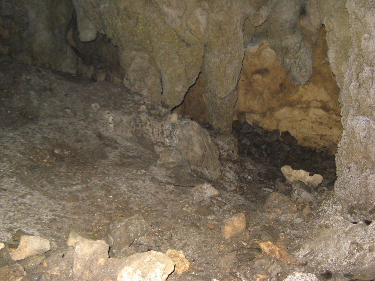 鍾乳洞の入り口から1歩中に入ると何も見えません。通路らしいものはありますが、照明や手摺は無くありません。持っていた小さめの懐中電灯を頼りに少し進んでみました。懐中電灯の明かりが小さく、全体を見渡せるほどの明るさではなかったので数十メートル進んだところで奥に進むのを断念しましたが、少し重苦しく神秘的な情景を目にすることができました。