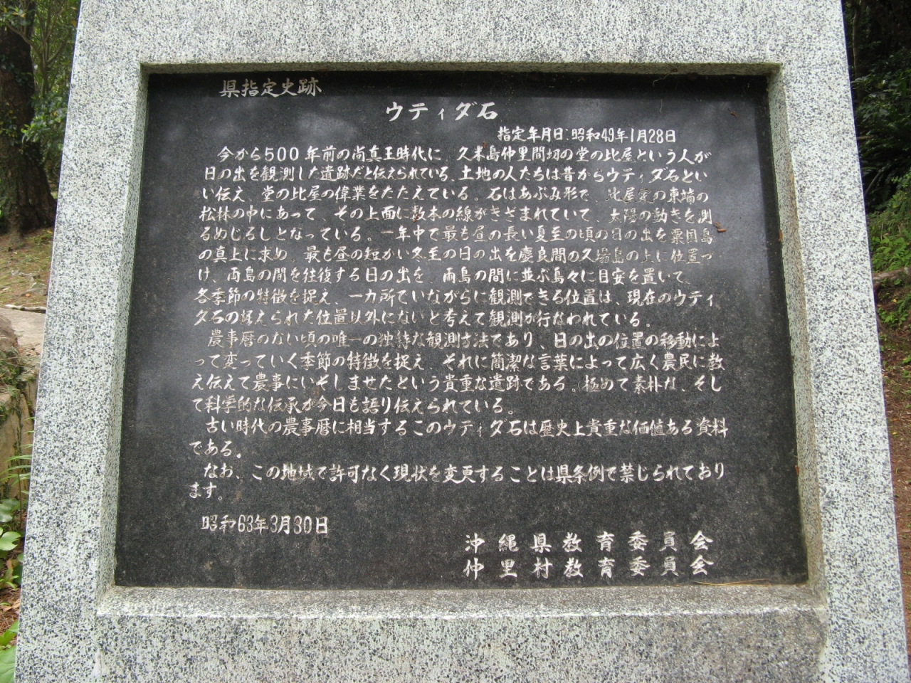 説明板が無ければ、ただの大きな石として見過ごしてしまう地味なものですが、暦の無い時代に太陽の位置を観測して、農事歴を考え出したということに感心しました。- 旅行時期