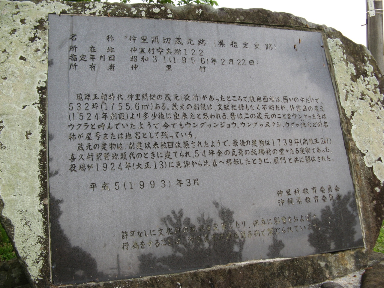 説明板によると、蔵元の建物は創建以来数回改築されたそうで、最後の建物は1763年に建てられたが1924年に解体されたとか。現在は建物は残っていませんが、立派な琉球石灰岩の石塀やアーチ門は一見の価値があります。- 旅行時期