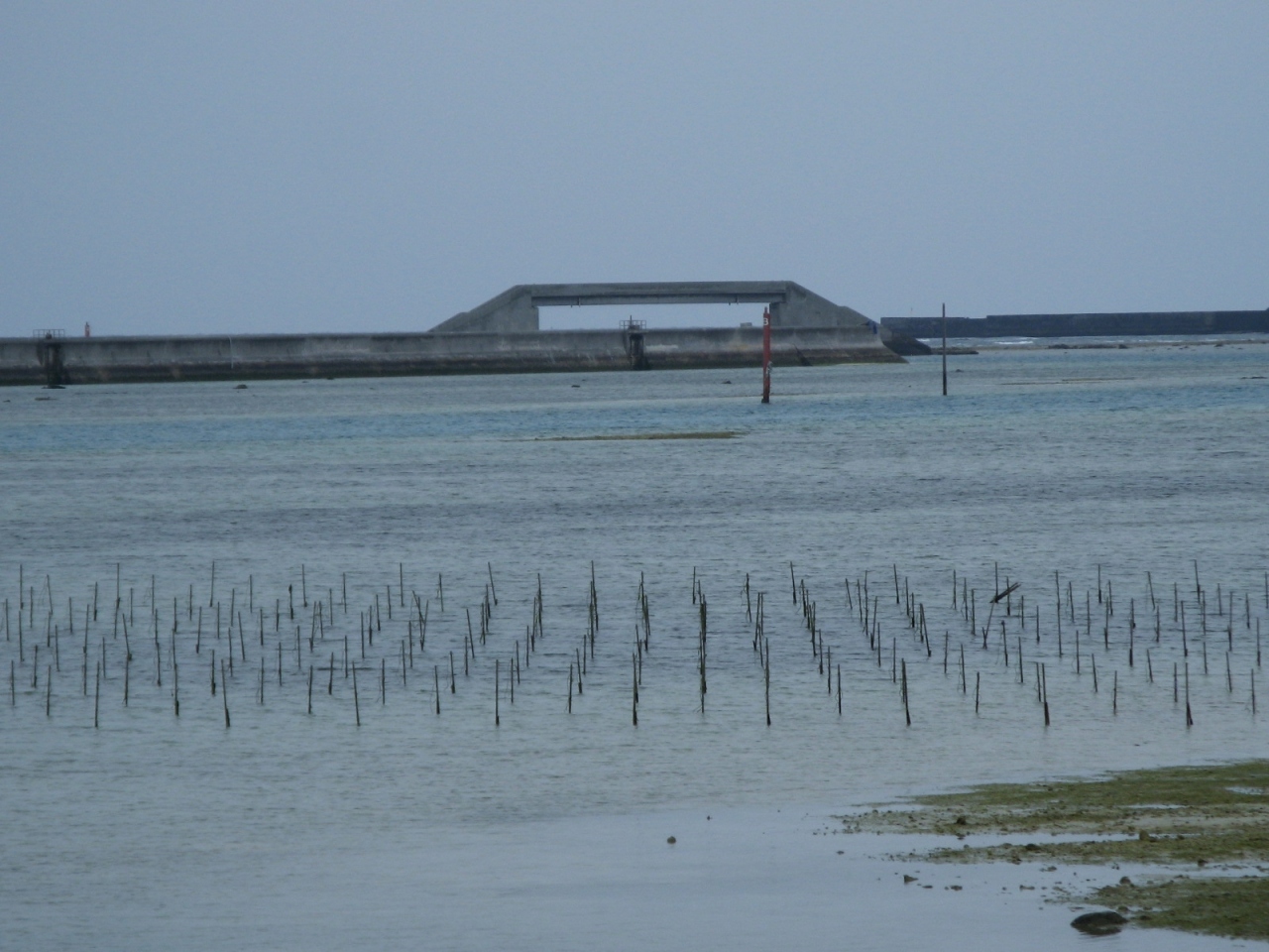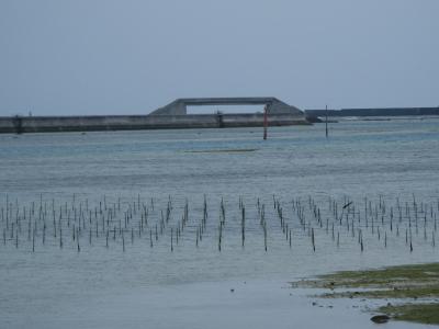 干潟には歩道のような石垣があり、橋や島まで行くことができます。橋の上にあがって上みると橋の上からは船の航路や干潟が一望できなかなかの景色でした。