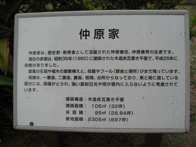 沖縄を代表する歴史学者、仲原善忠の生家で、その前には、“生誕の地”の石碑と仲原家の説明板があります。