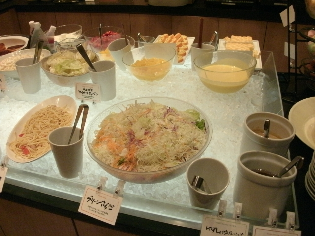 串カツのほかにも、カレー、お茶漬け、スープ、パスタ、サラダなども食べ放題で、ミニケーキやチョコレートマウンテン、ソフトクリーム等のデザートもあります。
